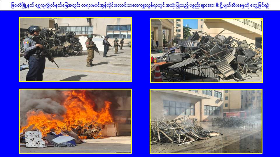 ၎င်းအပြင် မြဝတီမြို့နယ်အတွင်းရှိ KK Park နယ်မြေနှင့် ရွှေကုက္ကိုလ်နယ်မြေတို့၌ အွန်လိုင်းလိမ်လည်လောင်းကစားမှုကျူးလွန်ရာတွင် အသုံးပြုသည့်ပစ္စည်းများအား ထပ်မံ၍ အသုံးပြုနိုင်ခြင်းမရှိစေရန်အတွက် ယနေ့တွင်လည်း စနစ်တကျမီးရှို့ဖျက်ဆီးခဲ့ကြောင်း သိရှိရသည်။