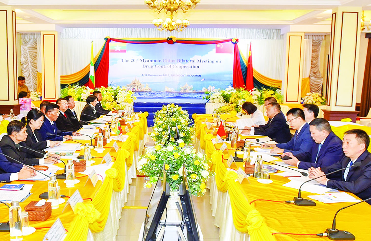 အကြိမ်(၂၀)မြောက် မြန်မာ-တရုတ် နှစ်နိုင်ငံ မူးယစ်ဆေးဝါးပူးပေါင်းထိန်းချုပ်ရေးအစည်းအဝေးကို ယနေ့မွန်းလွဲပိုင်းတွင် တောင်ကြီးမြို့ တောင်ကြီးဟိုတယ်၌ အိမ်ရှင်အဖြစ်လက်ခံကျင်းပသည်။