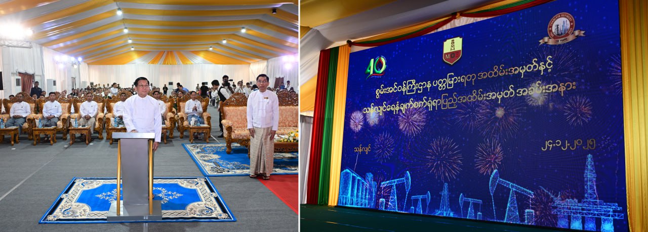 ပြည်ထောင်စုသမ္မတမြန်မာနိုင်ငံတော် ယာယီသမ္မတ နိုင်ငံတော်လုံခြုံရေးနှင့် အေးချမ်းသာယာရေးကော်မရှင်ဥက္ကဋ္ဌ ဗိုလ်ချုပ်မှူးကြီး မင်းအောင်လှိုင် စွမ်းအင်ဝန်ကြီးဌာန နှစ် (၄၀) ပြည့် ပတ္တမြားရတု၊ သန်လျင်ရေနံချက်စက်ရုံရာပြည့်နှင့် စွမ်းအင်ပြတိုက်ဖွင့်ပွဲအခမ်းအနားသို့ တက်ရောက်ချီးမြှင့်