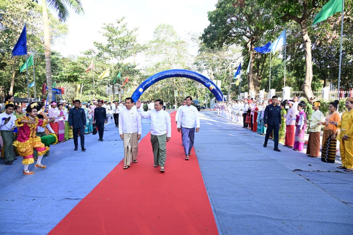ဦးစွာ နိုင်ငံတော်ယာယီသမ္မတ နိုင်ငံတော်လုံခြုံရေးနှင့်အေးချမ်းသာယာရေးကော်မရှင်ဥက္ကဋ္ဌနှင့် အဖွဲ့ဝင်များသည် အခမ်းအနားကျင်းပပြုလုပ်မည့်နေရာသို့ ရောက်ရှိကြရာ စွမ်းအင်ဝန်ကြီးဌာနမှ ဝန်ထမ်းများ၊ ကျောင်းသား၊ ကျောင်းသူများ၊ ဘင်ခရာအဖွဲ့များ၊ ရိုးရာယဉ်ကျေးမှုအကအဖွဲ့များ၊ တိုင်းရင်းသားမောင်မယ်များနှင့် တာဝန်ရှိသူများက လှိုက်လှဲနွေးထွေးစွာကြိုဆိုနှုတ်ဆက်ကြသည်။