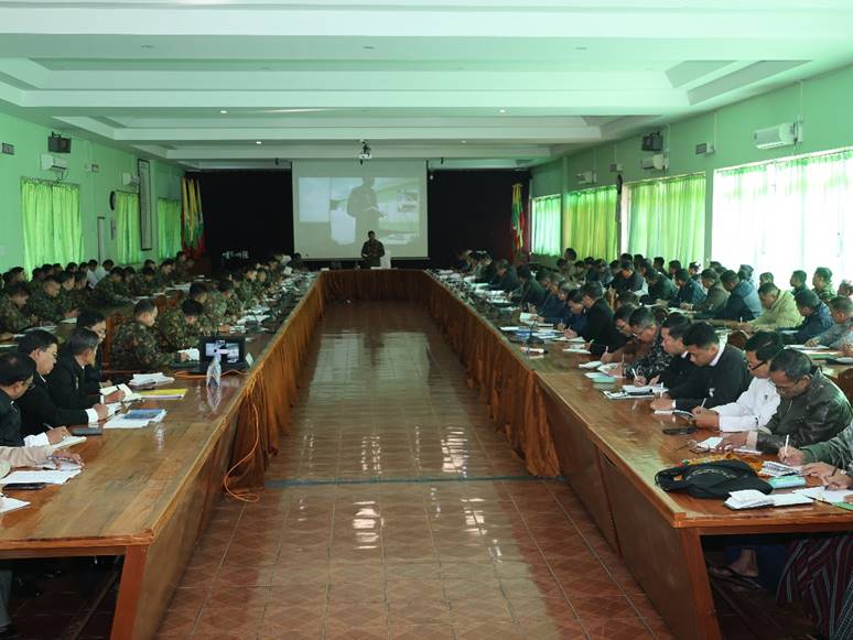 ရှမ်းပြည်နယ် (အရှေ့ပိုင်း)၊ မြို့နယ်များ၌ ဒီဇင်ဘာ ၂၈ ရက်တွင်ကျင်းပခဲ့သည့် ၂၀၂၅ ခုနှစ်၊ ပါတီစုံဒီမိုကရေစီအထွေထွေရွေးကောက်ပွဲ အပိုင်း(၁)၏ အားနည်းချက်၊ အားသာချက်များအား ပြန်လည်သုံးသပ်ခြင်းနှင့် ရွေးကောက်ပွဲအပိုင်း(၂)ကျင်းပရန် ကျန်ရှိနေသေးသော မြို့နယ်များ၌ အောင်မြင်စွာကျင်းပနိုင်ရေးလုပ်ငန်းညှိနှိုင်းအစည်းအဝေးကို ယနေ့နံနက်ပိုင်းတွင် တြိဂံဒေသတိုင်းစစ်ဌာနချုပ် အစည်းအဝေးခန်းမ၌ပြုလုပ်ခဲ့ရာ တိုင်းမှူး ဗိုလ်ချုပ် စိုးလှိုင်နှင့် အဖွဲ့ဝင်များ၊ ပြည်နယ်၊ ခရိုင်၊ မြို့နယ်အဆင့်ဌာနဆိုင်ရာတာဝန်ရှိသူများ၊ ရှမ်းပြည်နယ်(အရှေ့ပိုင်း) ရွေးကောက်ပွဲကော်မရှင်အဖွဲ့ခွဲမှ တာဝန်ရှိသူများ၊ ဌာနေပြည်သူ့စစ်အဖွဲ့ဝင်များနှင့် ဖိတ်ကြားထားသူများ တက်ရောက်ကြသည်။