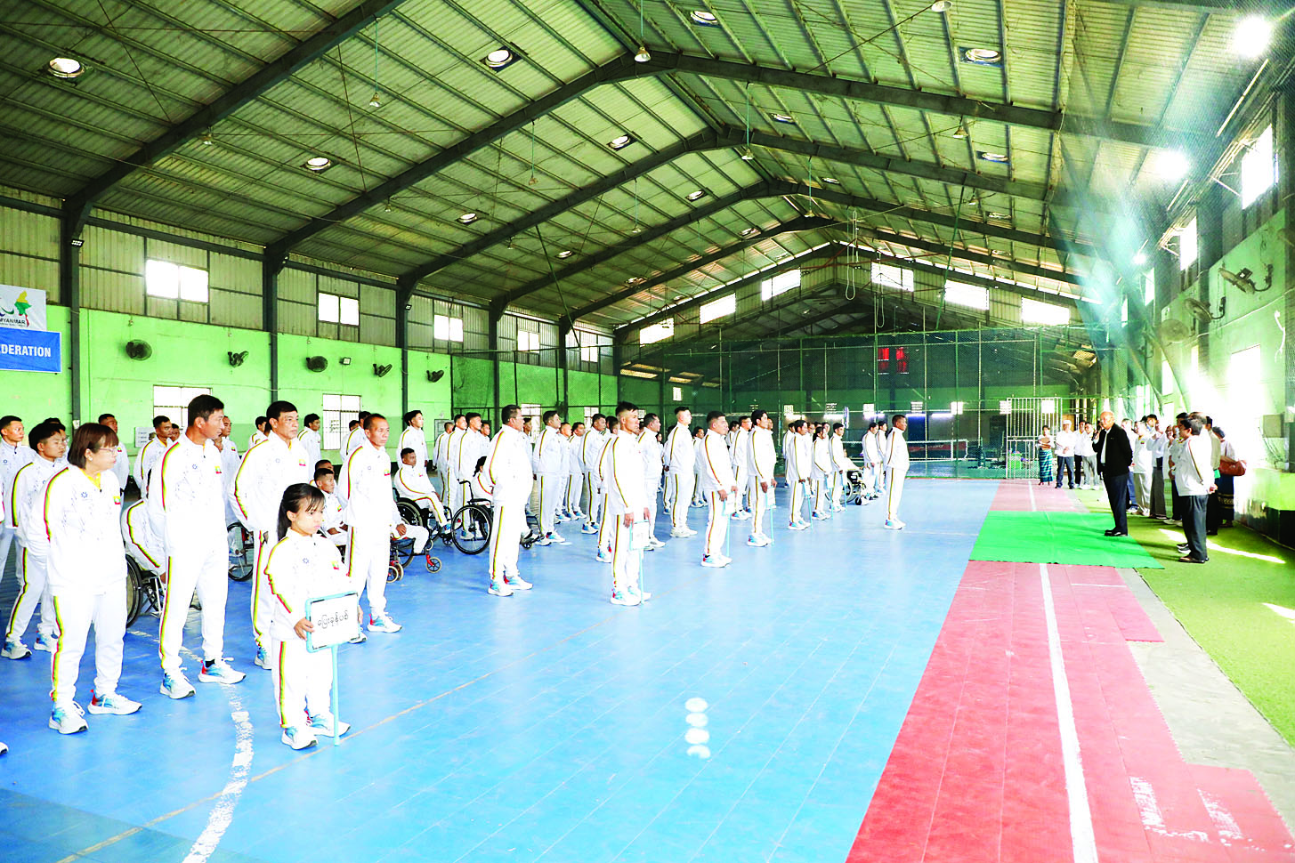 ယမန်နေ့မွန်းလွဲပိုင်းကလည်း ပြည်ထောင်စုဝန်ကြီးသည် အားကစားနှင့်ကာယပညာဦးစီးဌာန ညွှန်ကြားရေးမှူးချုပ်၊ တာဝန်ရှိသူများနှင့်အတူ ရန်ကုန်မြို့ ဒဂုံမြို့သစ်မြောက်ပိုင်းရှိ မသန်စွမ်းအားကစားအဖွဲ့ချုပ်၌ ၂၀၂၆ ခုနှစ် ဇန်နဝါရီ ၂၀ ရက်မှ ၂၆ ရက်အထိ ထိုင်းနိုင်ငံတွင် ကျင်းပမည့် (၁၃) ကြိမ်မြောက် အာဆီယံမသန်စွမ်းအားကစားပြိုင်ပွဲတွင် အားကစားနည်း ၁၉ နည်း ထည့်သွင်းကျင်းပမည်ဖြစ်ရာ မြန်မာနိုင်ငံ မသန်စွမ်းအားကစားအဖွဲ့ချုပ်မှ ရေကူး၊ ပြေးခုန်ပစ်၊ စစ်တုရင်၊ အလေးမ၊ ဂိုးလ်ဘော၊ ဘောလုံး၊ ဘော်လီဘော၊ စားပွဲတင်တင်းနစ်၊ သေနတ်ပစ်၊ ဘိုစီယာနှင့် ဘိုးလင်း စသည့်အားကစားနည်း ၁၁ နည်းတို့တွင် ဝင်ရောက်ယှဉ်ပြိုင်ရန်အတွက် စခန်းဝင်လေ့ကျင့်လျက်ရှိသည့် အုပ်ချုပ်နည်းပြများနှင့် အားကစားသမားများအား တွေ့ဆုံအားပေးစကားပြောကြားသည်။