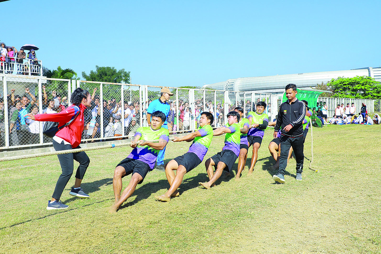 ထို့အတူ လေ့ကျင့်ရေးကွင်းအမှတ် (၃)၌ နံနက် ၈ နာရီမှစတင်ကာ ဝန်ကြီးဌာနပေါင်းစုံ လွန်ဆွဲ(အမျိုးသမီး)ပြိုင်ပွဲ ရှုံးထွက်ပွဲစဉ်များအဖြစ် ပြည်ထောင်စုရာထူးဝန်အဖွဲ့အသင်းနှင့် ဥပဒေရေးရာ ဝန်ကြီးဌာနအသင်း၊ သာသနာရေးနှင့်ယဉ်ကျေးမှုဝန်ကြီးဌာနအသင်းနှင့် နိုင်ငံခြားရေးဝန်ကြီးဌာနအသင်း၊ နယ်စပ်ရေးရာဝန်ကြီးဌာနအသင်းနှင့် လူမှုဝန်ထမ်း၊ ကယ်ဆယ်ရေးနှင့် ပြန်လည်နေရာချထားရေးဝန်ကြီးဌာနအသင်း၊ အားကစားနှင့်လူငယ်ရေးရာဝန်ကြီးဌာနအသင်းနှင့် ကာကွယ်ရေးဝန်ကြီးဌာနအသင်း၊ လွန်ဆွဲ(အမျိုးသား)ပြိုင်ပွဲ ရှုံးထွက်ပွဲစဉ်များအဖြစ် အားကစားနှင့်လူငယ်ရေးရာဝန်ကြီး ဌာနအသင်းနှင့် ကာကွယ်ရေးဝန်ကြီးဌာနအသင်း၊ လျှပ်စစ်စွမ်းအားဝန်ကြီးဌာနအသင်းနှင့် ဟိုတယ်နှင့်ခရီးသွားလာရေးဝန်ကြီးဌာနအသင်း၊ နယ်စပ်ရေးရာဝန်ကြီးဌာနအသင်းနှင့် သယံဇာတနှင့် သဘာဝပတ်ဝန်းကျင်ထိန်းသိမ်းရေးဝန်ကြီးဌာနအသင်း၊ ပြည်ထောင်စုရာထူးဝန်အဖွဲ့အသင်းနှင့် ပြည်ထဲရေးဝန်ကြီးဌာနအသင်းတို့ ဆက်လက်ယှဉ်ပြိုင်သွားမည် ဖြစ်ပြီး အားကစားဝါသနာရှင် မိဘပြည်သူများအနေဖြင့် မည်သူမဆိုအခမဲ့ လာရောက်ကြည့်ရှုအားပေးနိုင်ကြောင်း သိရသည်။