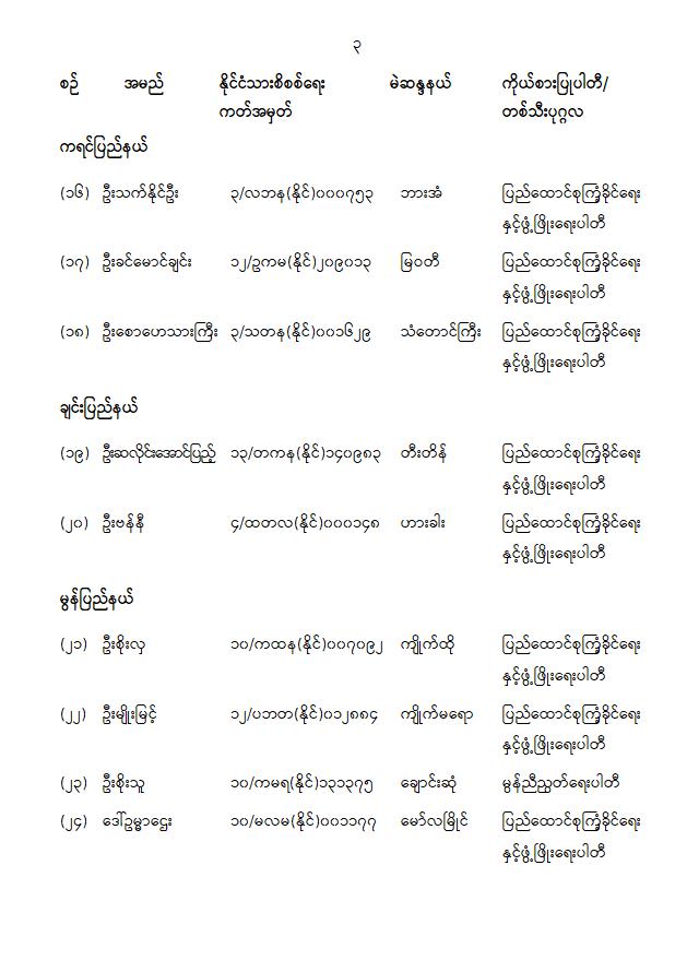 ပြည်သူ့လွှတ်တော်ကိုယ်စားလှယ်အဖြစ် ရွေးကောက်တင်မြှောက်ခံရသူများ အမည်စာရင်း ကြေညာခြင်း