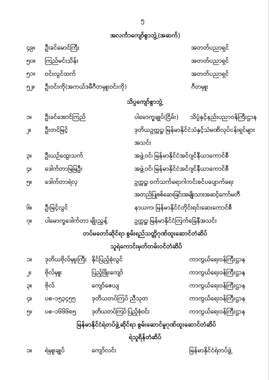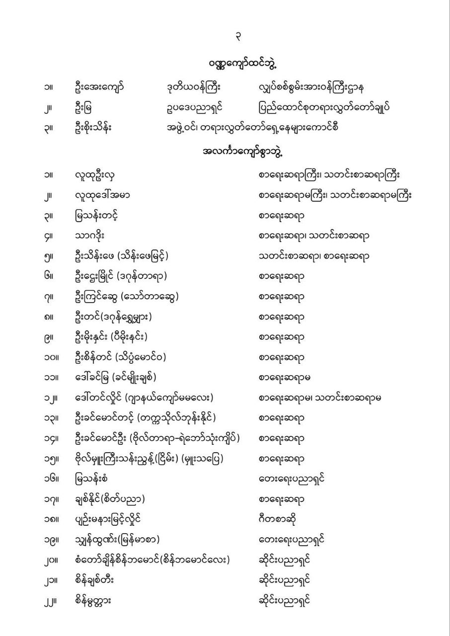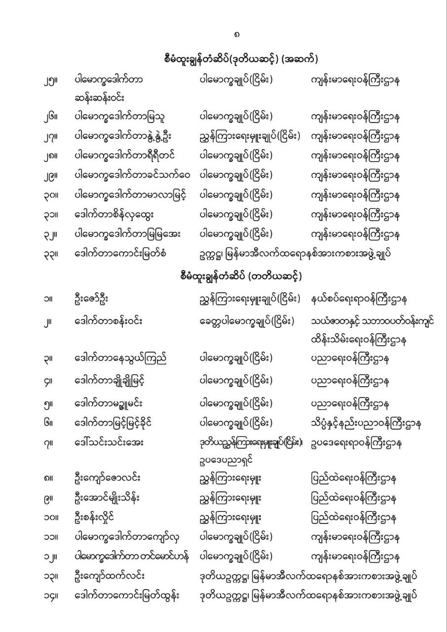 ဝန်ကြီးဌာန ကြေညာချက်များ