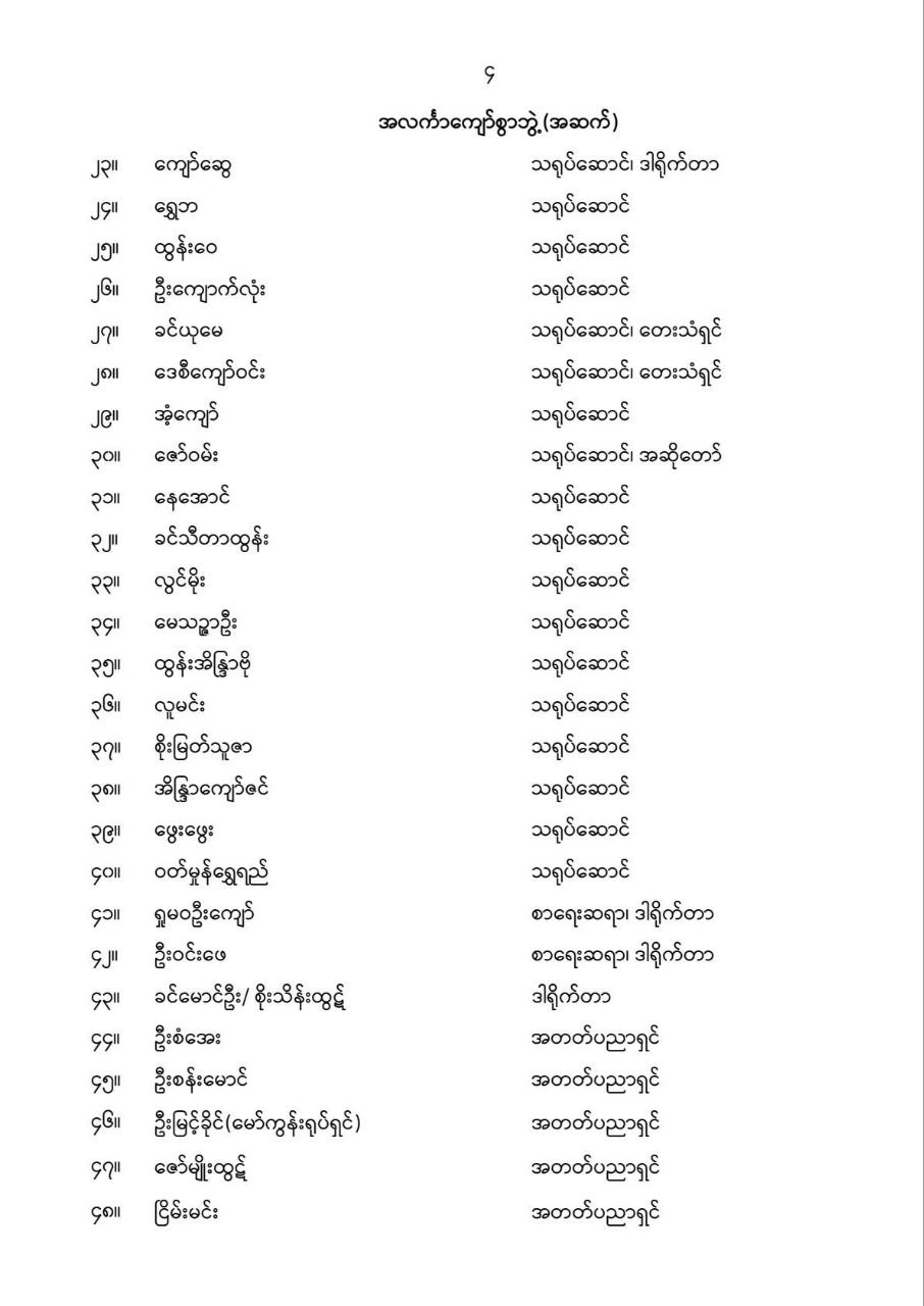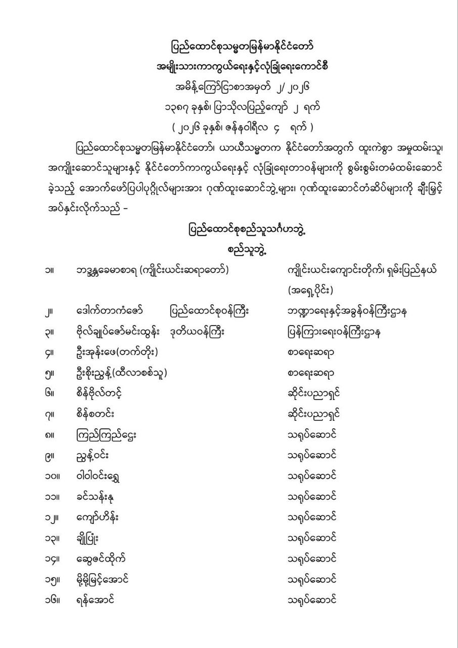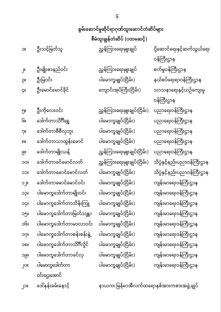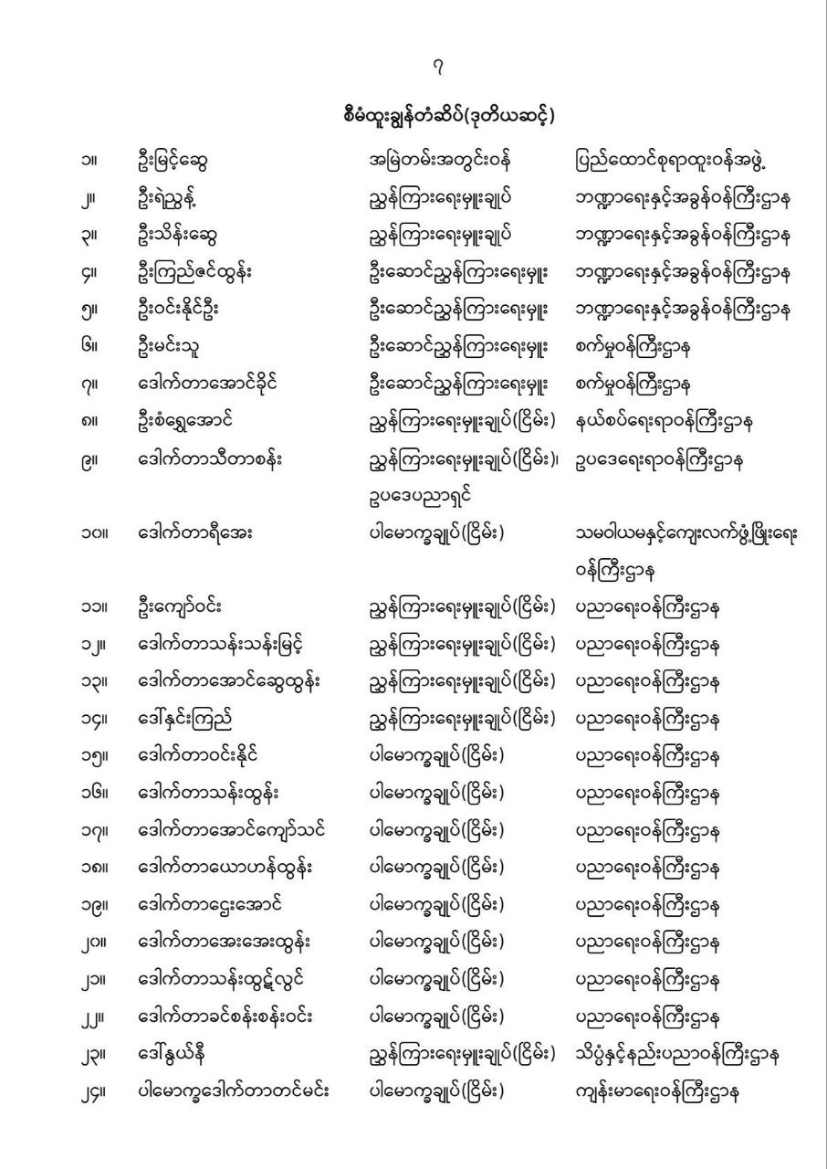 ဝန်ကြီးဌာန ကြေညာချက်များ