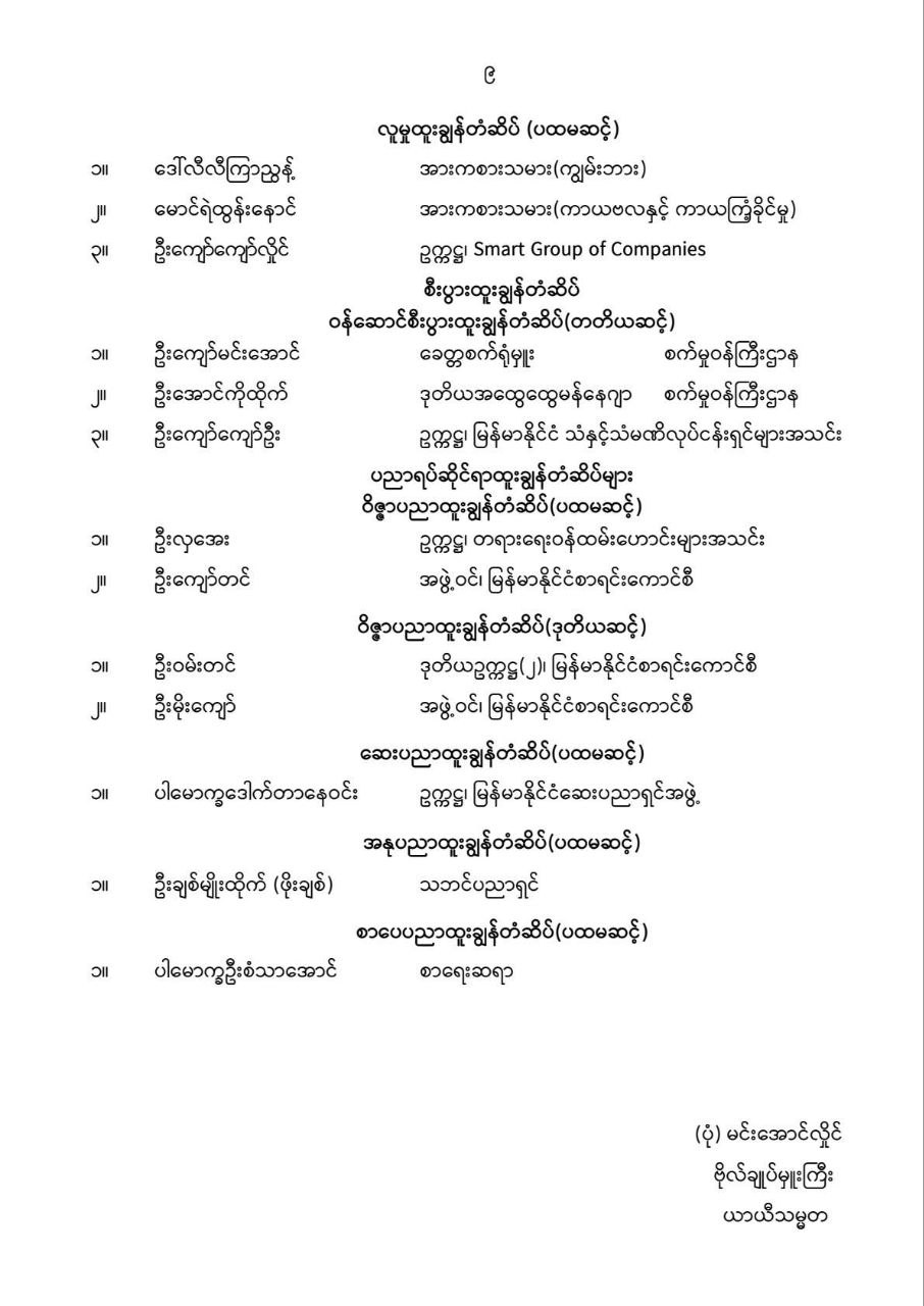 ဦးစီးဌာနနှင့် လုပ်ငန်းများ၏ ကြေညာချက်များ