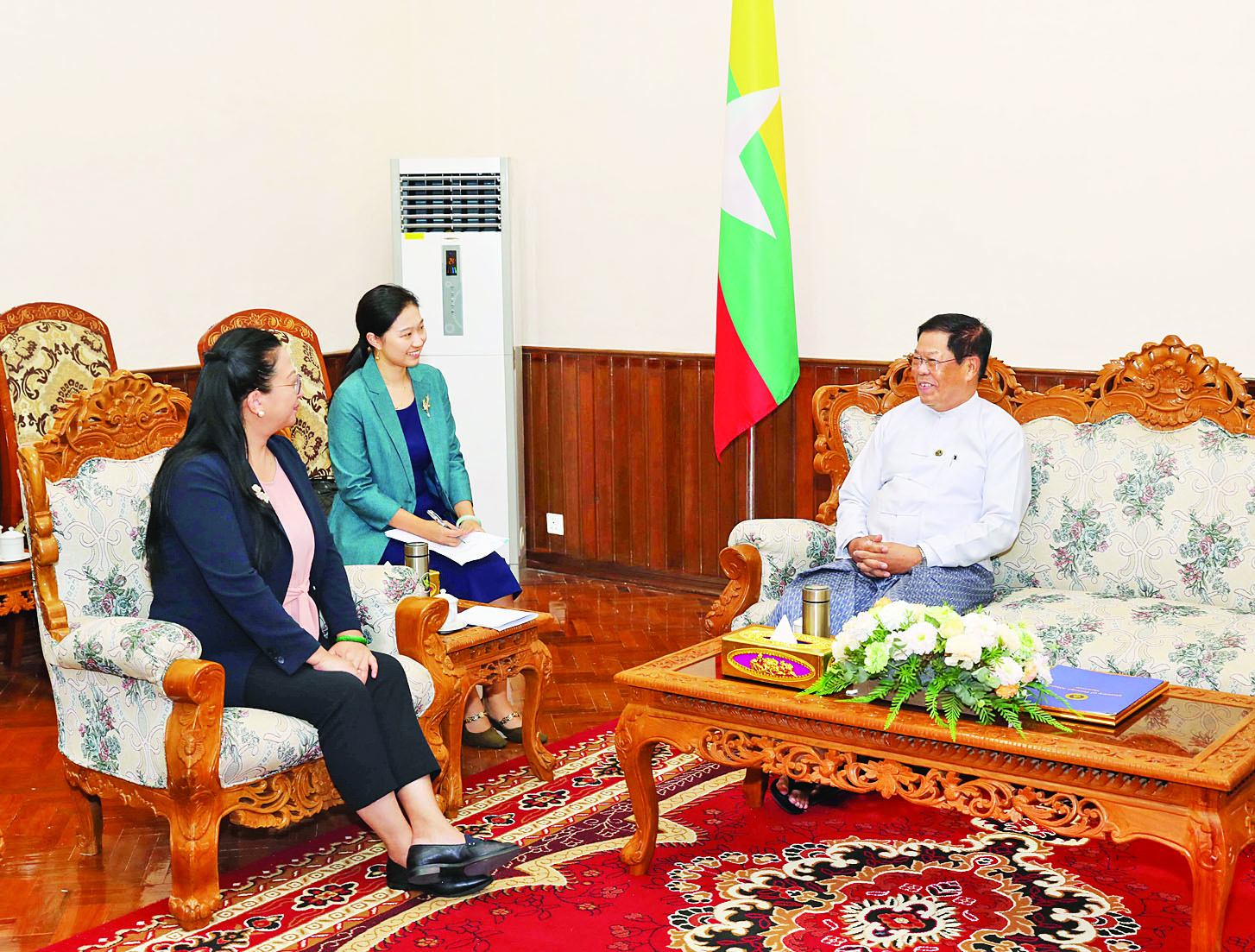 ပြည်ထောင်စုသမ္မတမြန်မာနိုင်ငံ နိုင်ငံခြားရေးဝန်ကြီးဌာန ပြည်ထောင်စုဝန်ကြီး ဦးသန်းဆွေသည် မြန်မာနိုင်ငံဆိုင်ရာ တရုတ်ပြည်သူ့သမ္မတနိုင်ငံ သံအမတ်ကြီး Ms. Ma Jia အား ယနေ့မွန်းလွဲ ၂ နာရီတွင် နေပြည်တော်ရှိ နိုင်ငံခြားရေးဝန်ကြီးဌာန၌ လက်ခံတွေ့ဆုံသည်။