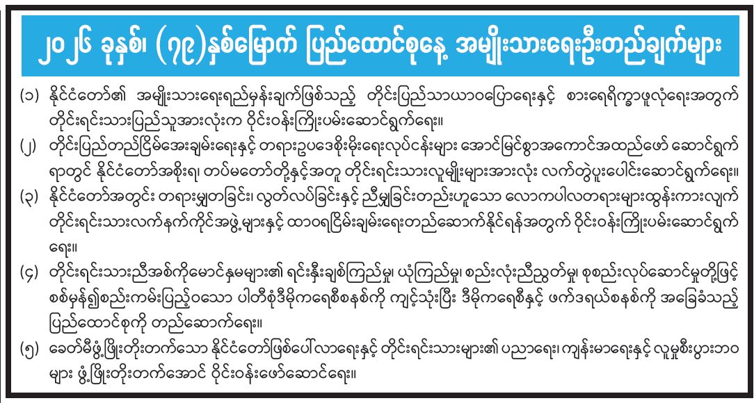 ၂ဝ၂၆ ခုနှစ်၊ (၇၉) နှစ်မြောက် ပြည်ထောင်စုနေ့ အမျိုးသားရေးဦးတည်ချက်များ
