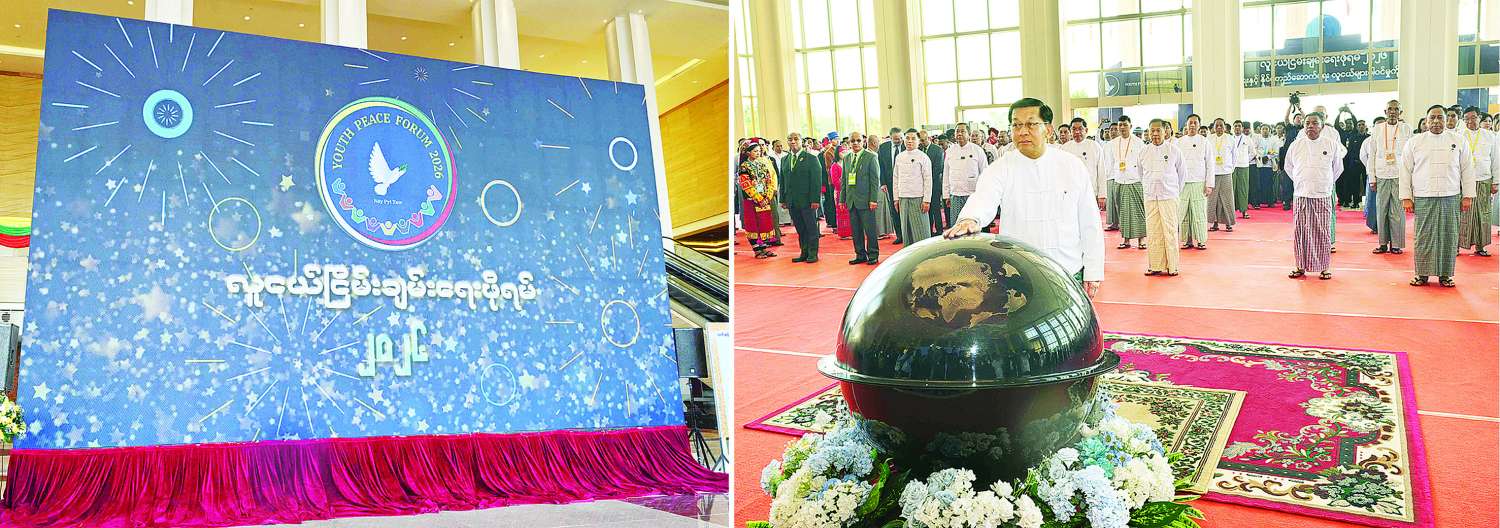 “လူငယ်ငြိမ်းချမ်းရေးဖိုရမ် ၂ဝ၂၆” ဖွင့်ပွဲအခမ်းအနားကျင်းပ နိုင်ငံတော်ယာယီသမ္မတ နိုင်ငံတော်လုံခြုံရေးနှင့်အေးချမ်းသာယာရေးကော်မရှင်ဥက္ကဋ္ဌ အမျိုးသားစည်းလုံးညီညွတ်ရေးနှင့် ငြိမ်းချမ်းရေးဖော်ဆောင်မှုဗဟိုကော်မတီဥက္ကဋ္ဌ ဗိုလ်ချုပ်မှူးကြီး မင်းအောင်လှိုင် တက်ရောက်ဖွင့်လှစ်ပြီး အဖွင့်အမှာစကားပြောကြား