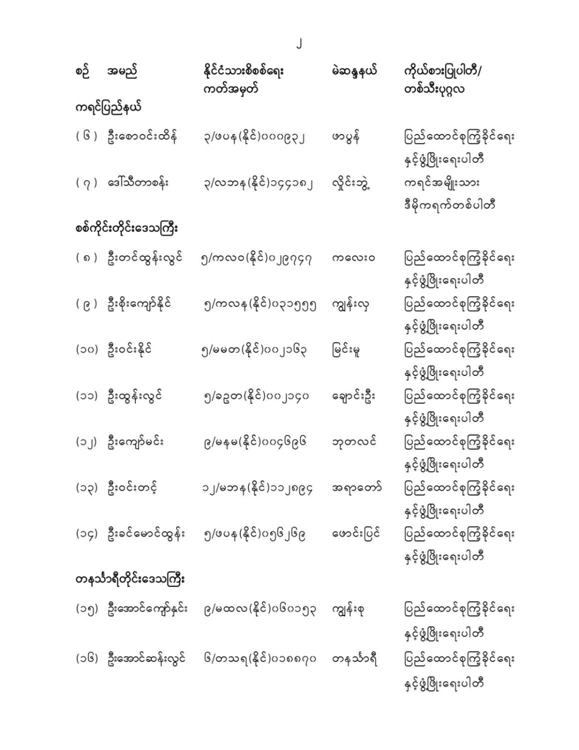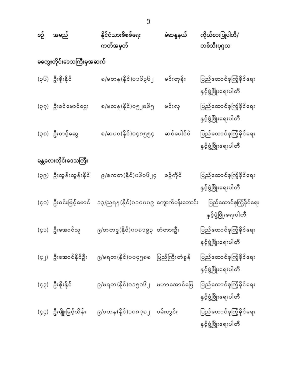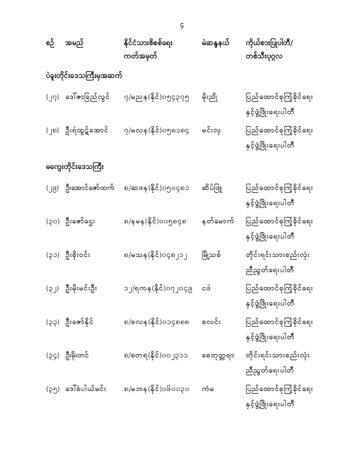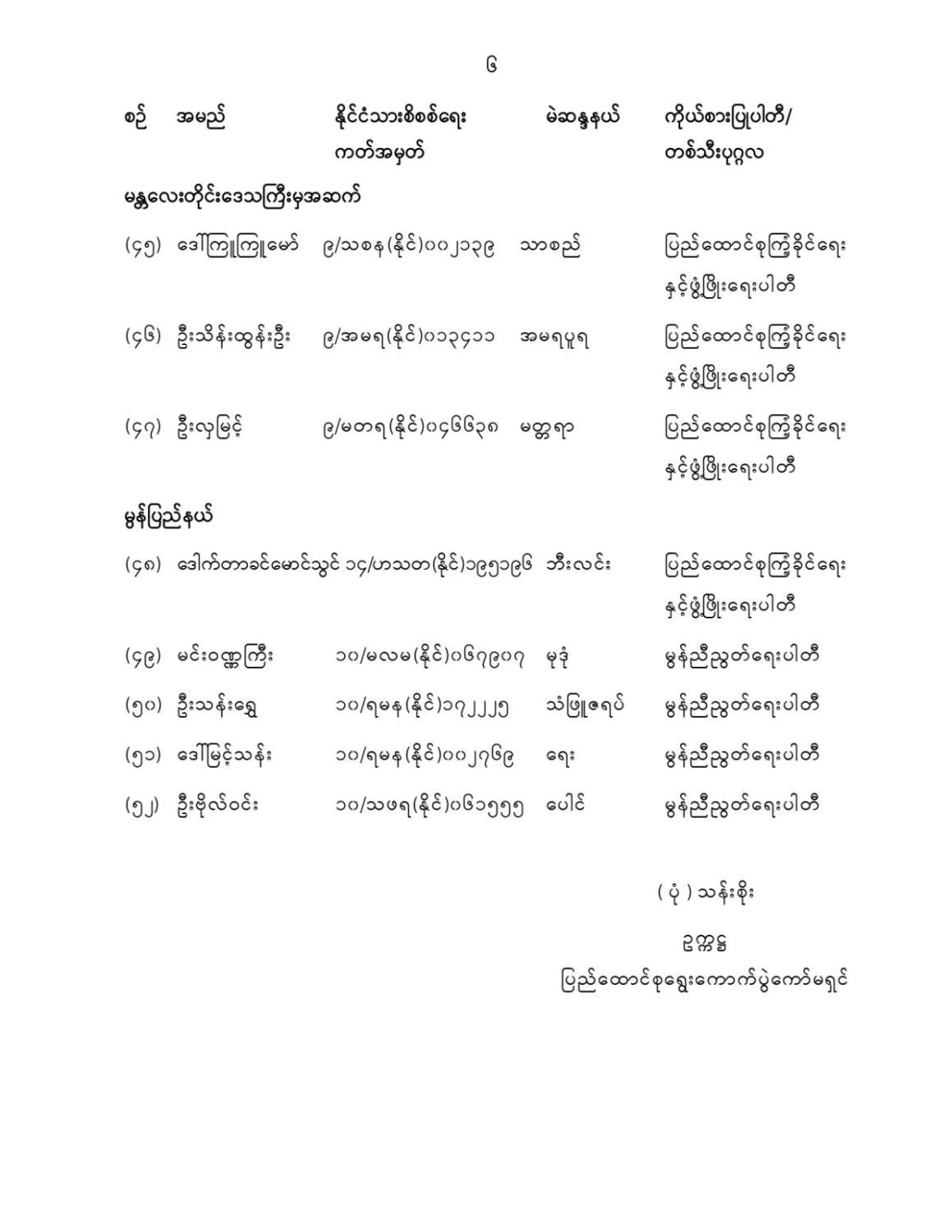 ပြည်သူ့လွှတ်တော်ကိုယ်စားလှယ်အဖြစ် ရွေးကောက်တင်မြှောက်ခံရသူများ အမည်စာရင်းကြေညာခြင်း