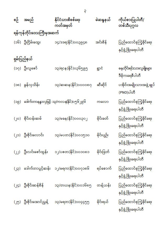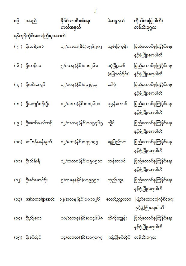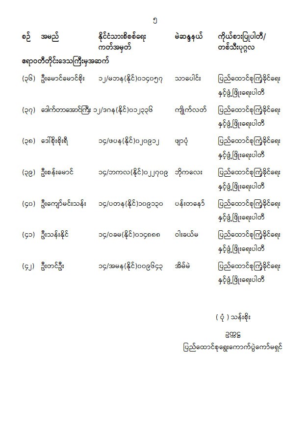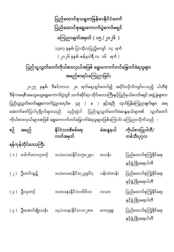 ပြည်သူ့လွှတ်တော်ကိုယ်စားလှယ်အဖြစ် ရွေးကောက်တင်မြှောက်ခံရသူများ အမည်စာရင်းကြေညာခြင်း