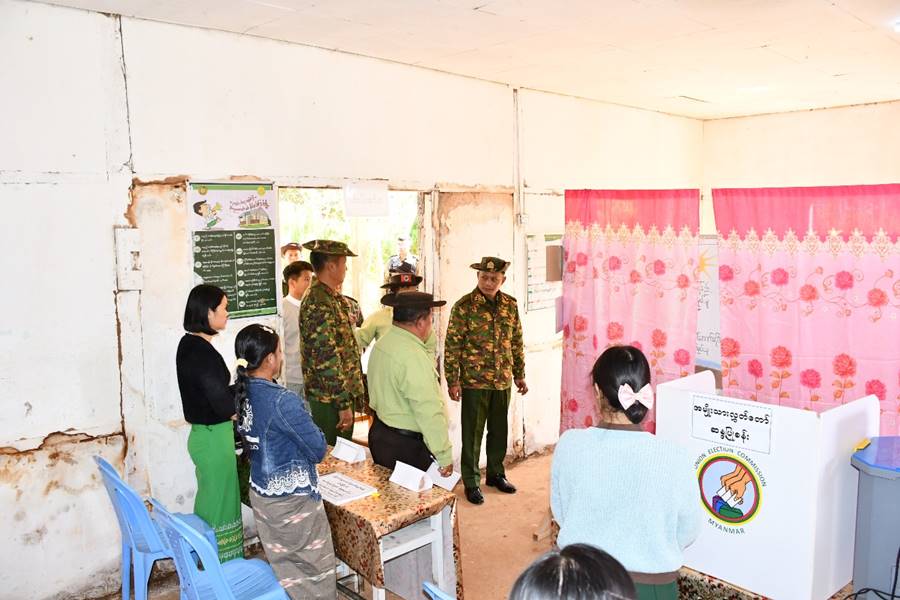 ရှမ်းပြည်နယ်(တောင်ပိုင်း)၊ မိုးနဲမြို့နယ်၌ ၂၀၂၅ ခုနှစ်၊ ပါတီစုံအထွေထွေရွေးကောက်ပွဲအပိုင်း (၃) အောင်မြင်စွာ ကျင်းပနိုင်ရေး ဌာနဆိုင်ရာများနှင့် တွေ့ဆုံပွဲကို ယနေ့မွန်းလွဲပိုင်းတွင် အဆိုပါမြို့ရှိ ကမ္ဘောဇခန်းမတွင် ပြုလုပ်ရာ အရှေ့အလယ်ပိုင်းတိုင်းစစ်ဌာနချုပ်တိုင်မှူး ဗိုလ်ချုပ် စိုးမြတ်ထွဋ် နှင့်တာဝန်ရှိသူများ၊ မြို့နယ်ရွေးကောက်ပွဲကော်မရှင်မှ တာဝန်ရှိသူများ၊ ဌာနဆိုင်ရာများမှတာဝန်ရှိသူများနှင့် မဲရုံများတွင် တာဝန်ထမ်းဆောင်မည့် ဌာနဆိုင်ရာဝန်ထမ်းများ တက်ရောက်ကြသည်။