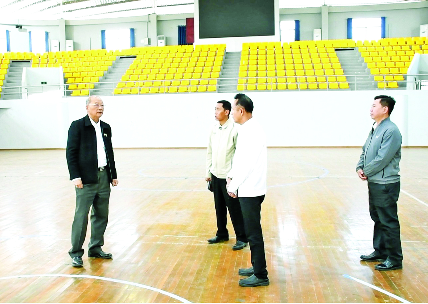 မြန်မာနိုင်ငံအိုလံပစ်ကော်မတီဥက္ကဋ္ဌ အားကစားနှင့်လူငယ်ရေးရာဝန်ကြီးဌာနနှင့် ဟိုတယ်နှင့်ခရီးသွားလာရေးဝန်ကြီးဌာန ပြည်ထောင်စုဝန်ကြီး Jeng Phang နော်တောင်သည် မန္တလေးတိုင်းဒေသကြီး အားကစားနှင့်ကာယပညာဦးစီးဌာန ညွှန်ကြားရေးမှူးနှင့်အတူ ယနေ့နံနက်ပိုင်းတွင် မန္တလေးငလျင်ဒဏ်ကြောင့် ထိခိုက်ပျက်စီးခဲ့သည့် မန္တလေးတိုင်းဒေသကြီးအတွင်းရှိ အားကစားကွင်း/ အားကစားရုံများအား ငလျင်အပြီး ပြန်လည်ပြုပြင်ဆောင်ရွက်နေမှု အခြေအနေများကို လိုက်လံကြည့်ရှုစစ်ဆေးသည်။