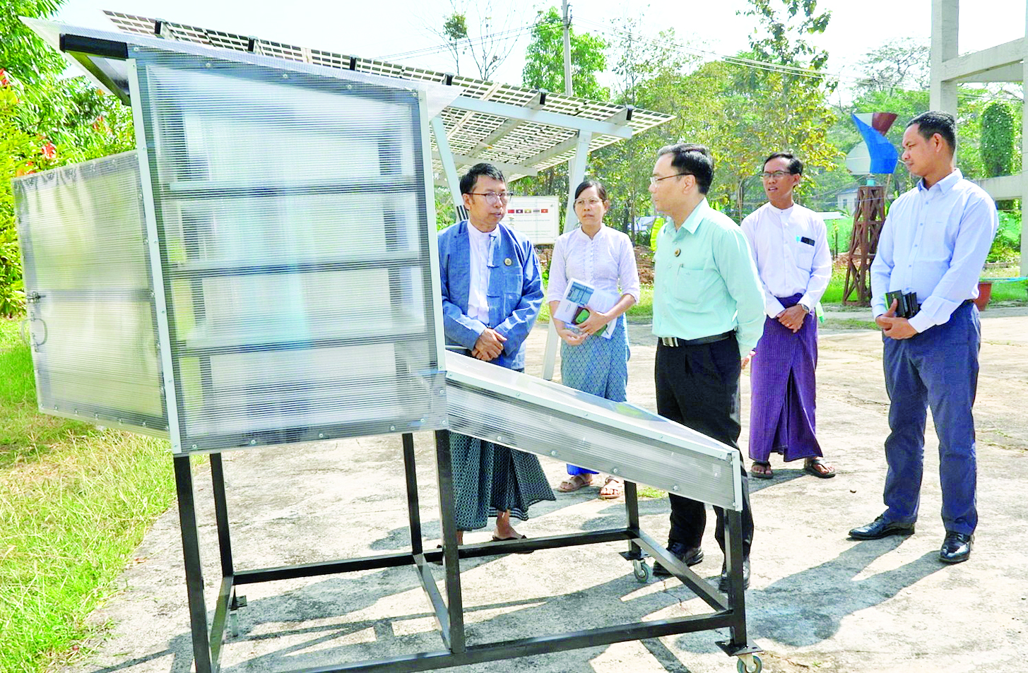 သိပ္ပံနှင့်နည်းပညာဝန်ကြီးဌာန ဒုတိယဝန်ကြီး ဒေါက်တာအောင်ဇေယျသည် ယမန်နေ့နံနက်ပိုင်းတွင် ရန်ကုန်မြို့ သုတေသနနှင့်တီထွင်ဆန်းသစ်မှုဦးစီးဌာနရှိ ပြန်ပြည့်မြဲစွမ်းအင်နှင့် အီလက်ထရောနစ်နည်းပညာသုတေသနဗဟိုဌာနရှိ ဆိုလာနှင့် အသေးစားလေအားလျှပ်စစ် သုတေသနလုပ်ငန်းများ ဆောင်ရွက်နေမှုများနှင့် ရလဒ်အခြေအနေများကို ကြည့်ရှုစစ်ဆေးပြီး နိုင်ငံတော်ရှိ ပေါကြွယ်ဝသော ပြန်လည်ပြည့်ဖြိုး မြဲစွမ်းအင်ရင်းမြစ်များကို “နိုင်ငံတော်သာယာဖို့ သဘာဝပတ်ဝန်းကျင်ထိန်းကြ စို့” အမျိုးသားရေးဆောင်ပုဒ်နှင့်အညီ နိုင်ငံတော်သာယာပြီး စဉ်ဆက်မပြတ် ဖွံ့ဖြိုးတိုးတက်ရေးအတွက် စိုက်ပျိုး-မွေးမြူရေး ကုန်ကြမ်းအခြေပြု Agro-based Industries နှင့် MSME များတွင် အကျိုးရှိထိရောက်စွာ အသုံးချနိုင်ရန်အတွက် တီထွင်ဆန်းသစ်နည်းပညာ သုတေသနလုပ်ငန်းများ မြှင့်တင်ဆောင်ရွက်ရန်၊ သုတေသနရလဒ်များကို ဆက်စပ်ဌာနများ၊ MSME များတွင် အမှန်တကယ်အကျိုးရှိစွာသုံးစွဲနိုင်ရေး ဆက်လက်ဖြန့်ဝေလွှဲပြောင်းသွားရန် တိုက်တွန်းမှာကြားသည်။