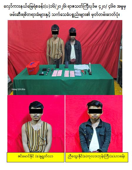 ထိုသို့ နိုင်ငံသားစိစစ်ရေးကတ်ပြားများနှင့် ဌာနဆိုင်ရာ/ရုံးစာရွက်စာတမ်းများ လိမ်လည်အတုပြုလုပ်သည့် ဖမ်းဆီးရမိတရားခံ ဂျင်မီအောင်(ခ)ကုလားကြီး(ခ)ဟာရွန်နှင့် ကျော်ထက်အောင် တို့အား လှိုင်သာယာ(အရှေ့ပိုင်း)မြို့မရဲစခန်း (ပ)၄၇/၂၀၂၆၊ ရာဇသတ်ကြီးပုဒ်မ ၄၂၀/ ၄၆၈ ဖြင့် လည်းကောင်း၊ ညီထွေးနိုင်(ခ)ကုလားဘုန်းကြီး(ခ)ဟာစန်းနှင့် ဇင်မောင်နိုင်(ခ)နူရွတ်လာတို့အား လှော်ကားနယ်မြေရဲစခန်း (ပ)၁၆/၂၀၂၆၊ ရာဇသတ်ကြီးပုဒ်မ ၄၂၀/ ၄၆၈ ဖြင့်လည်းကောင်း အမှုရေးဖွင့်ဖမ်းဆီးစစ်ဆေးကာ ထိရောက်စွာအရေးယူနိုင်ရေးနှင့် ပူးပေါင်းပါဝင်ကျူးလွန်သူများ အားလည်း ဆက်လက်ဖော်ထုတ်လျက်ရှိကြောင်း သတင်းရရှိသည်။