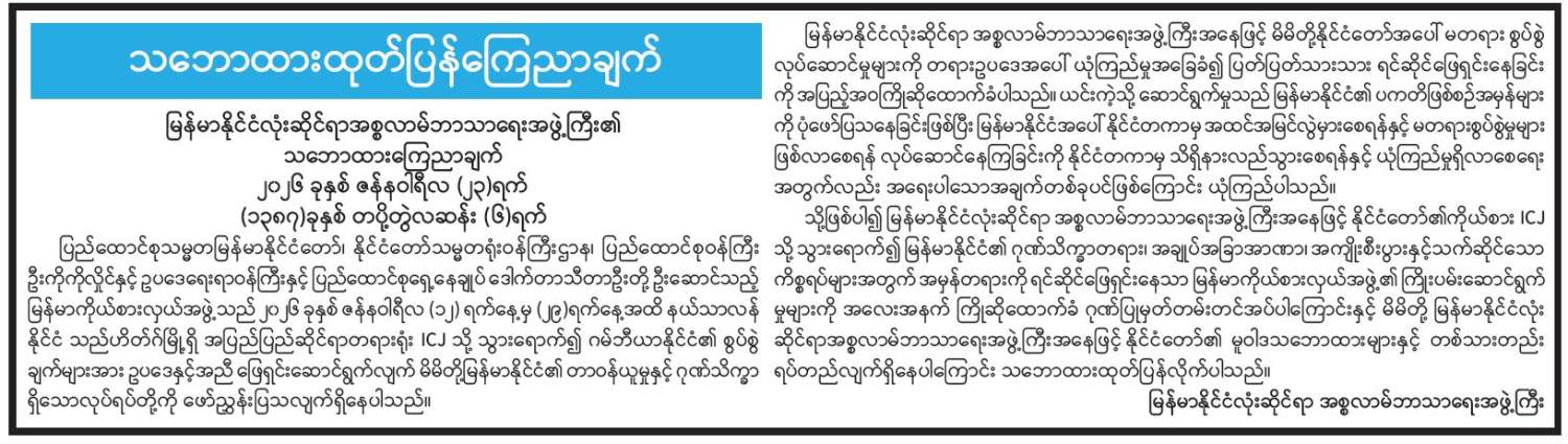 နိုင်ငံတော်အစိုးရ၏ ကြေညာချက်များ
