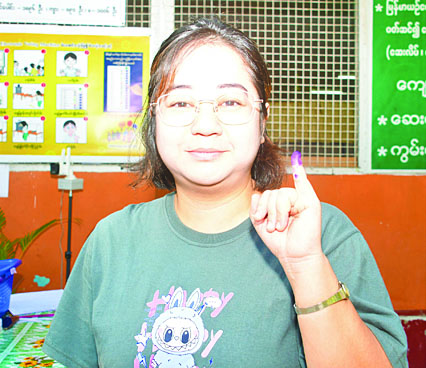 ကျွန်မက ပထမဆုံးဆန္ဒမဲပေးရတာပါ။ စက်နဲ့ပေးရတာ အဆင်ပြေပါတယ်။ နိုင်ငံအတွက် အကျိုးရှိမယ်လို့ ထင်ထားတဲ့ ပါတီကို မဲပေးခဲ့ပါတယ်။ ကျွန်မက ကျောင်းသူတစ်ဦးဖြစ်တဲ့အတွက် ပညာ ရေးကဏ္ဍကိုပဲ ဦးစားပေးပြောချင်ပါတယ်။ နိုင်ငံတည်ထောင်တဲ့အခါမှာ ပညာရေးနဲ့ တည်ထောင်ကြတဲ့ နိုင်ငံဟာ ဒီနေ့မှာ အရှိန်အဟုန်နဲ့ တိုးတက်နေတာကိုတွေ့ရ မှာပါ။ ပညာရည်မြင့်မားရင် နည်းပညာကပ်ပါလာတဲ့အတွက် စီးပွားရေးက အလိုလိုအောင်မြင်ပြီးသားပါ။ ပတ်ဝန်းကျင်နိုင်ငံတွေကိုကြည့်ရင် သိပါတယ်။ တည်ငြိမ်တဲ့ ပညာရေးစနစ်လည်းဖြစ်ဖို့ လိုပါတယ်။ လူငယ်တွေဆိုတာ အနာဂတ်ကို လင်းလက်တောက်ပစေတဲ့ မျိုးဆက်သစ်တွေဖြစ်တာကြောင့် လူငယ်တွေကို ရွှေချဖို့လိုတယ်လို့ ပြောချင်ပါတယ်။ ပညာရေးကဏ္ဍမှာလည်း တောင်ပေါ်၊ မြေပြန့်အခွင့်အရေးနဲ့ သင်ကြားရေး ညီမျှဖို့လိုပါတယ်။ တိုင်းပြည်ရဲ့အနာဂတ်ဟာ လူငယ်တွေအပေါ်မှာ မူတည်နေတဲ့အတွက် ကျွန်မတို့ လူငယ်တွေအနာဂတ် ရွှေရောင်လင်းလက်ဖို့ဆိုရင် ပညာအလင်းနဲ့မှ ဝင်းလက်စေမှာပါ။ လူငယ်၊ ပညာရေးနဲ့ ပေါင်းစည်းမှုဟာ နိုင်ငံဖွံ့ဖြိုးတိုးတက်မှုရဲ့ စစ်မှန်တဲ့ခွန်အားတစ်ခုလို့ ပြောလိုပါတယ်။