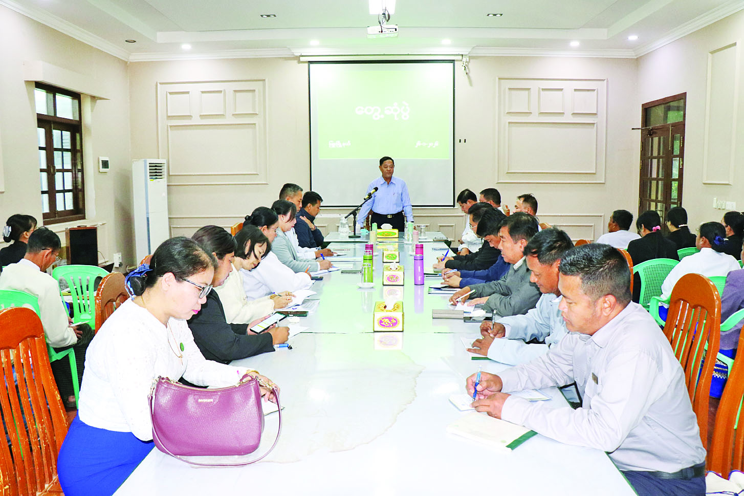 သမဝါယမနှင့်ကျေးလက်ဖွံ့ဖြိုးရေးဝန်ကြီးဌာန ပြည်ထောင်စုဝန်ကြီး ဦးလှမိုးသည် ယနေ့နံနက်ပိုင်းက ပဲခူးတိုင်းဒေသကြီး ဖြူးမြို့နယ်ဆည်မြောင်းနှင့် ရေအသုံးချမှုစီမံခန့်ခွဲရေးဦးစီးဌာနရုံးသို့ သွားရောက်၍ သမဝါယမအသင်းစုများမှ အသင်းအမှုဆောင်များ၊ ဝန်ကြီးဌာနအောက် တိုင်းအဆင့်၊ ခရိုင်အဆင့်၊ မြို့နယ်အဆင့် ဝန်ထမ်းများနှင့်တွေ့ဆုံသည်။