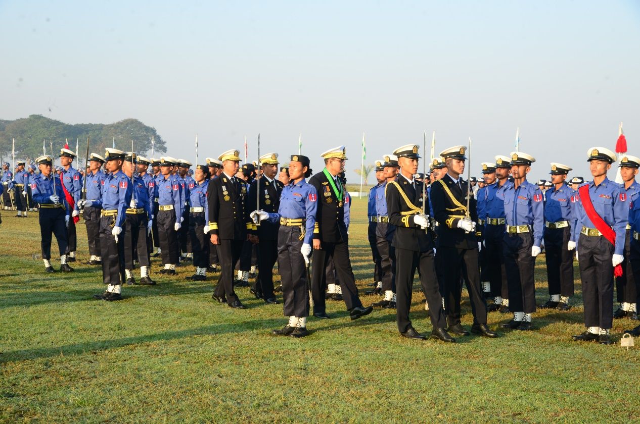 ယင်းနောက် ကာကွယ်ရေးဦးစီးချုပ် (ရေ) ဗိုလ်ချုပ်ကြီး ထိန်ဝင်း ရောက်ရှိလာပြီး ကျောင်းဆင်းတပ်ခွဲနှင့် ဂုဏ်ပြုတပ်ခွဲများ၏ အလေးပြုခြင်းကိုခံယူ၍ ကျောင်းဆင်းတပ်ခွဲနှင့် ဂုဏ်ပြုတပ်ခွဲများကို စစ်ဆေးသည်။