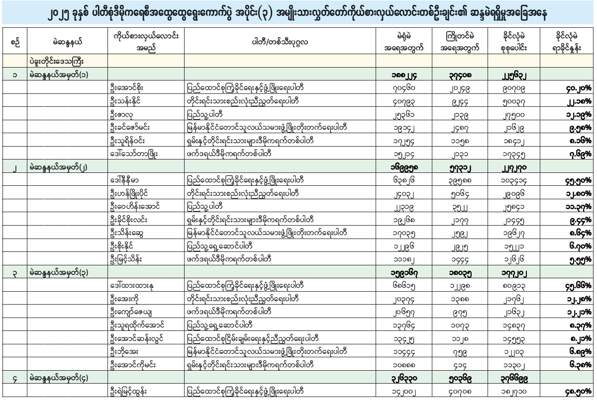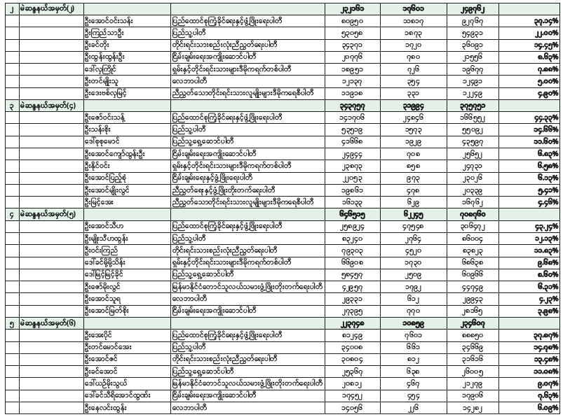၂၀၂၅ ခုနှစ် ပါတီစုံဒီမိုကရေစီအထွေထွေရွေးကောက်ပွဲ အပိုင်း(၃) အမျိုးသားလွှတ်တော်ကိုယ်စားလှယ်လောင်းတစ်ဦးချင်း၏ ဆန္ဒမဲရရှိမှုအခြေအနေ
