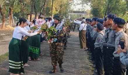 စစ်ဆင်ရေးတာဝန်များကို စွမ်းစွမ်းတမံထမ်းဆောင်ခဲ့ပြီး ရွပ်ရွပ်ချွံချွံတိုက်ပွဲဝင်ခဲ့သော အောင်ပွဲအလီလီရ ရှေ့တန်းပြန်နိုင်ငံ့သားကောင်း တပ်မတော်သားများအား ဝမ်းမြောက်စွာ သောင်းသောင်းဖြဖြ ဂုဏ်ပြုကြိုဆို