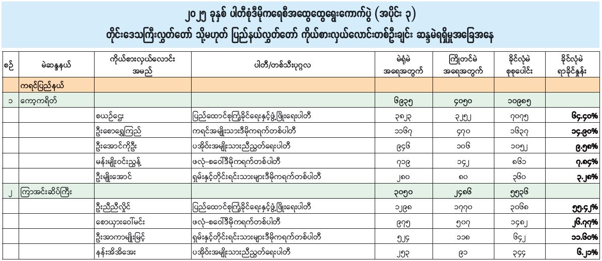 ၂၀၂၅ ခုနှစ် ပါတီစုံဒီမိုကရေစီအထွေထွေရွေးကောက်ပွဲ (အပိုင်း ၃) တိုင်းဒေသကြီးလွှတ်တော် သို့မဟုတ် ပြည်နယ်လွှတ်တော် ကိုယ်စားလှယ်လောင်းတစ်ဦးချင်း ဆန္ဒမဲရရှိမှုအခြေအနေ 01/31/2026