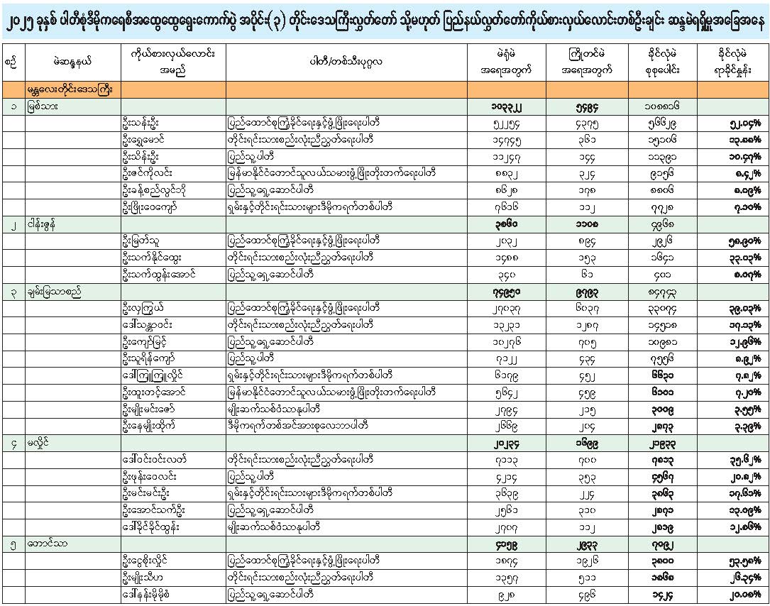၂၀၂၅ ခုနှစ် ပါတီစုံဒီမိုကရေစီအ‌ထွေထွေရွေးကောက်ပွဲ အပိုင်း(၃) တိုင်းဒေသကြီးလွှတ်တော် သို့မဟုတ် ပြည်နယ်လွှတ်တော်ကိုယ်စားလှယ်လောင်းတစ်ဦးချင်း ဆန္ဒမဲရရှိမှုအခြေအနေ