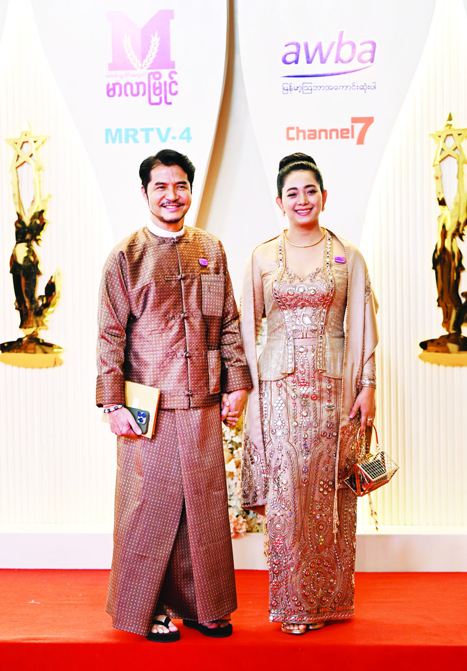 ၂၀၂၅ ခုနှစ်အတွက် မြန်မာ့ရုပ်ရှင်ထူးချွန်ဆုချီးမြှင့်ပွဲအခမ်းအနားသို့ တက်ရောက်လာကြသည့် အနုပညာရှင်များ