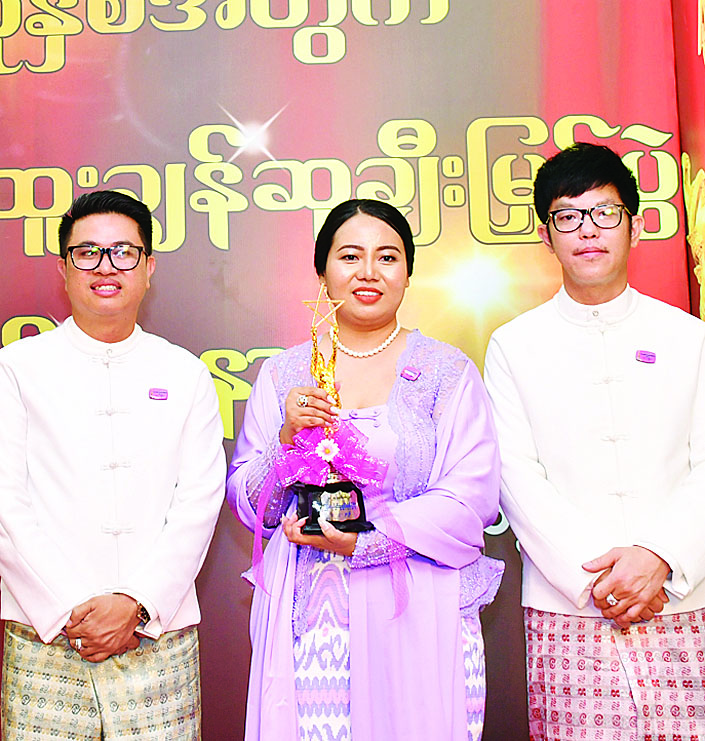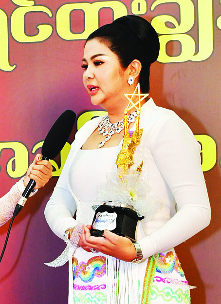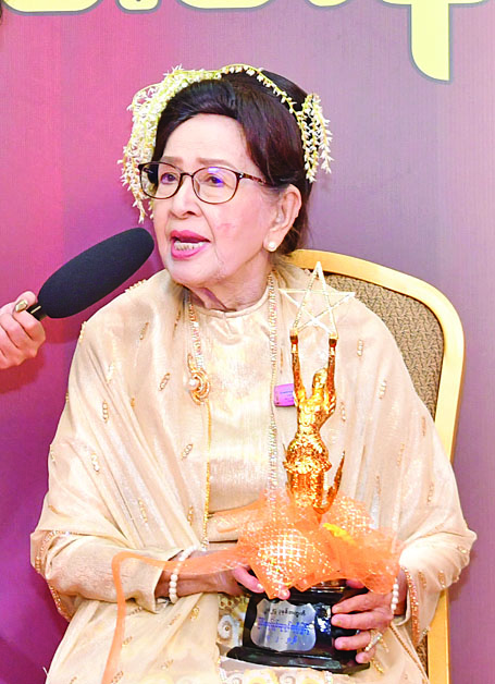 ကျွန်မအသက် (၉၅) နှစ် ရှိပါပြီ။ ဖြတ်သန်းလာခဲ့တဲ့ အနုပညာခရီးကလည်း ကြာခဲ့ပါပြီ။ အခုအချိန်မှာ ဒီဆုကို လက်ခံရရှိတဲ့အတွက်လည်း ဝမ်းသာပျော်ရွှင်မိပါတယ်။ သရုပ်ဆောင်အလုပ်ဆိုတာ ပြည်သူလူထုကြိုက်မှ ဆုရရှိတဲ့အနေအထားအထိ ရောက်ရှိတာပါ။ နောင်အနုပညာမျိုးဆက်သစ်ကလေးတွေအနေနဲ့လည်း ကိုယ့်ကိုသင်ကြားပေးတဲ့ ဆရာတွေရဲ့ စကားကို မြေဝယ်မကျနားထောင်ပြီး အလုပ်ကြိုးစားကြပါ။ အားလုံးကို ကျေးဇူးတင်ရှိပါတယ်လို့ ပြောလိုပါတယ်။