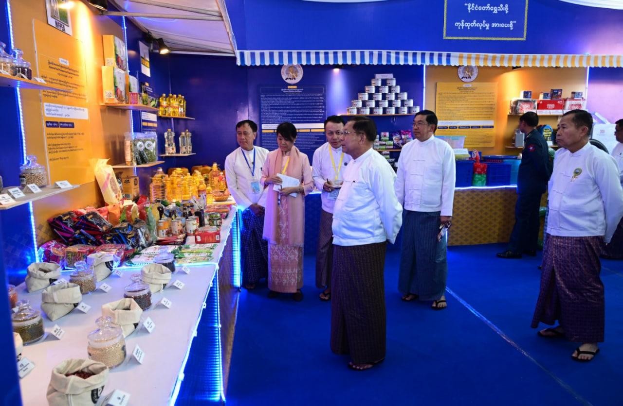 ထိုသို့လှည့်လည်ကြည့်ရှုရာတွင် နိုင်ငံတော်ယာယီသမ္မတ နိုင်ငံတော်လုံခြုံရေးနှင့်အေးချမ်းသာယာရေးကော်မရှင်ဥက္ကဋ္ဌနှင့် အဖွဲ့ဝင်များသည် ၂၀၂၆ ခုနှစ်၊ (၇၉) နှစ်မြောက် ပြည်ထောင်စုနေ့အထိမ်းအမှတ် ပြည်ထောင်စုအဆင့် MSME ထုတ်ကုန်ပြပွဲနှင့် ဈေးရောင်းပွဲတော်၌ ပါဝင်ခင်းကျင်းပြသထားသည့် စီးပွားရေးနှင့်ကူးသန်းရောင်းဝယ်ရေးဝန်ကြီးဌာန ပြည်ပဈေးကွက်ချိတ်ဆက်ရေးလုပ်ငန်းအဖွဲ့ပြခန်း၊ ပြည်တွင်းဈေးကွက်ချိတ်ဆက်ရေးလုပ်ငန်းအဖွဲ့ပြခန်း၊ ဝန်ကြီးဌာနများနှင့် ချိတ်ဆက်ရေးလုပ်ငန်းအဖွဲ့ပြခန်းများအတွင်း MSME ကုန်ထုတ်လုပ်ငန်းများဆောင်ရွက်လျက်ရှိသည့် လုပ်ငန်းရှင်များ၏ ပြည်တွင်းပြည်ပဈေးကွက်ရရှိရေး တွေ့ဆုံဆွေးနွေးချိတ်ဆက်ဆောင်ရွက်နေမှုများကို လှည့်လည်ကြည့်ရှုအားပေးကြသည်။
