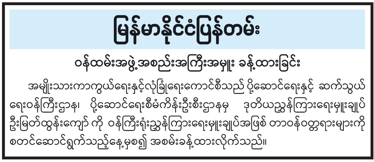 ဦးစီးဌာနနှင့် လုပ်ငန်းများ၏ ကြေညာချက်များ