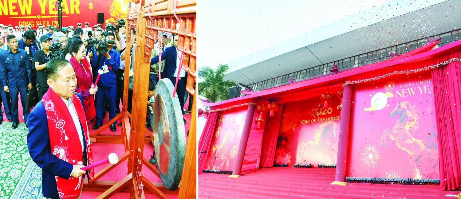ထို့နောက် နိုင်ငံတော်လုံခြုံရေးနှင့်အေးချမ်းသာယာရေးကော်မရှင် ဒုတိယဥက္ကဋ္ဌနှင့် မြန်မာနိုင်ငံဆိုင်ရာ တရုတ်ပြည်သူ့သမ္မတနိုင်ငံ သံအမတ်ကြီးတို့က နှစ်သစ်ကူးပွဲတော်အခမ်းအနားကို မင်္ဂလာမောင်းအား ၃ ကြိမ်တီးခတ်၍ အခမ်းအနားကို ဖွင့်လှစ်ပေး သည်။