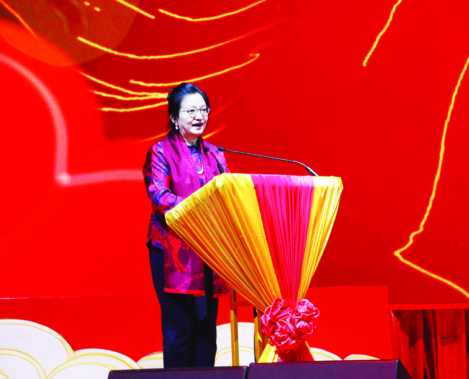 ယင်းနောက် မြန်မာနိုင်ငံဆိုင်ရာ တရုတ်ပြည်သူ့သမ္မတနိုင်ငံ သံအမတ်ကြီးက နှစ်သစ်ဆုတောင်းစကား ပြောကြားရာတွင် ယနေ့ညတွင် ကျင်းပပြုလုပ် သော မြန်မာနိုင်ငံရှိ တရုတ်နွယ်ဖွားများ၏ နှစ်သစ်ကူးပွဲတော်အထိမ်းအမှတ်အခမ်းအနားကို တက်ရောက်ပြီး အတူတကွ မြင်းနှစ်သစ်ကို ကြိုဆိုခွင့်ရခြင်း အတွက် အလွန်ဝမ်းမြောက်ဂုဏ်ယူပါကြောင်း၊ တရုတ်နှစ်သစ်ကူး ပွဲတော်သည် မိသားစုစည်းလုံး စုစည်းခြင်း စိတ်ခံစားမှု၊ နှစ်ဟောင်းကို နှုတ်ဆက်ပြီး နှစ်သစ်ကိုကြိုဆိုခြင်း တောင်းဆုမွန်များဖြင့် နှစ်သစ်၏အနှစ်သာရ ပေါ်လွင်နေပါကြောင်း၊ လူမှုအသိုင်းအဝိုင်းအတွင်း သဟဇာတဖြစ်စွာ ဆက်ဆံပြုမူခြင်းတို့ကိုလည်း ထင်ဟပ်စေပါကြောင်း၊ ဤအချက်များသည် အရှေ့တိုင်း၏တူညီသော တန်ဖိုးထားမှုများ ဖြစ်ပါကြောင်း။