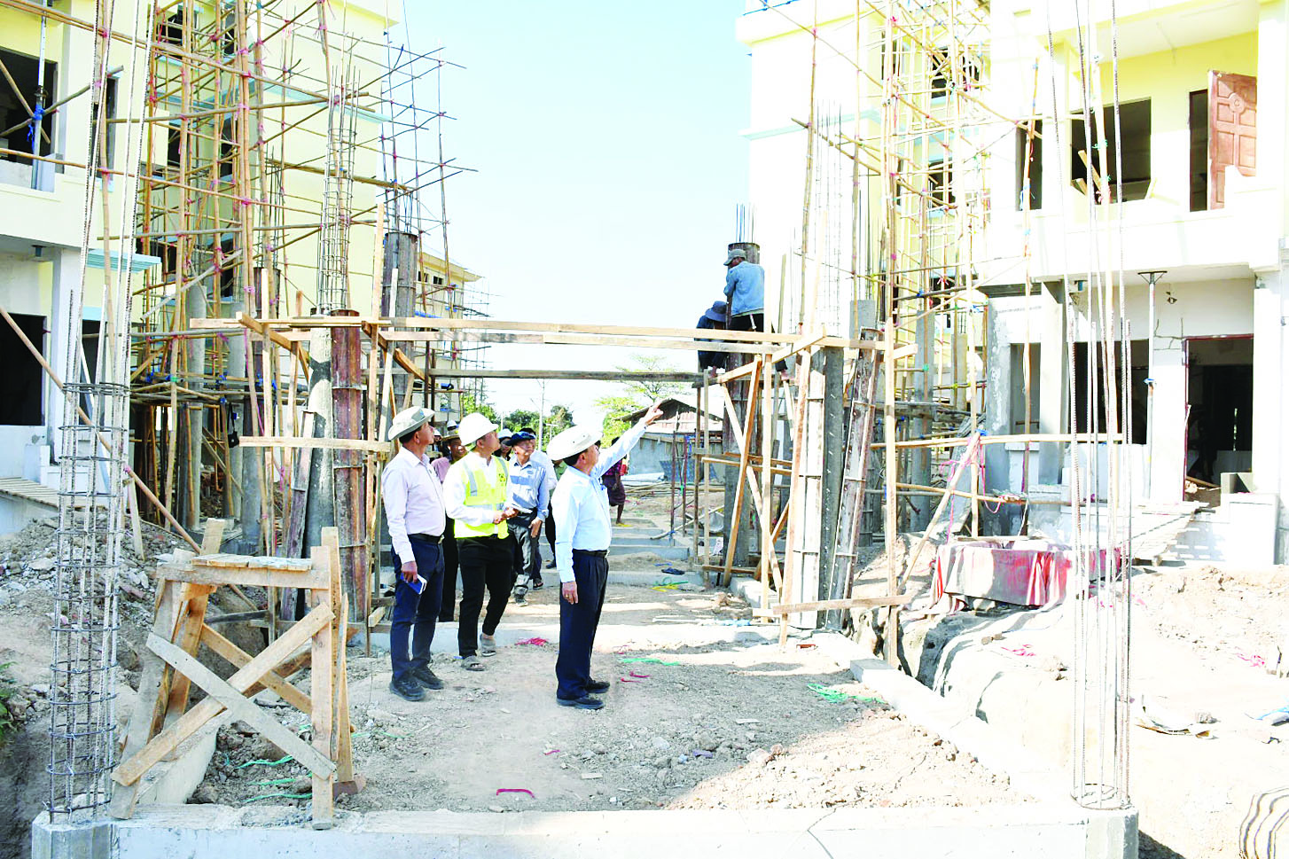 ထို့နောက် နေပြည်တော်ကောင်စီဥက္ကဋ္ဌသည် နေပြည်တော်ကောင်စီဝင်များ၊ ဌာနဆိုင်ရာတာဝန်ရှိသူများနှင့်အတူ ဇမ္ဗူသီရိမြို့နယ် ဉာဏသိဒ္ဓိရပ်ကွက်အတွင်းရှိ နေပြည်တော်ကောင်စီ၏ ၂၀၂၄-၂၀၂၅ ဘဏ္ဍာရေးနှစ် ငွေလုံးငွေရင်းရန်ပုံငွေဖြင့် အမှုထမ်းအိမ်ရာခြောက်ခန်းတွဲ လေးထပ်တည်ဆောက်နေသည့် အခြေအနေများကို သွားရောက်ကြည့်ရှုစစ်ဆေးပြီး လုပ်ငန်းများသတ်မှတ်ချိန်အတွင်း အမြန်ပြီးစီးအောင်ဆောင်ရွက်ရေး၊ လူအင်အား၊ စက်ယန္တရားအင်အားတိုးမြှင့်ဆောင်ရွက်ရေး၊ လုပ်ငန်းခွင်အတွင်း အရည်အသွေးပြည့်မီသည့် ပစ္စည်းများကိုသာ အသုံးပြုနိုင်ရေး၊ တာဝန်ရှိသူများက အနီးကပ်ကြီးကြပ်ဆောင်ရွက်ရေးနှင့် ငလျင်ဒဏ်အပြင် သဘာဝဘေးအန္တရာယ်ခံနိုင်ရည်ရှိအောင် သတ်မှတ်စံချိန်စံညွှန်းနှင့်အညီ ဆောင်ရွက်ရေးတို့ကို မှာကြားသည်။