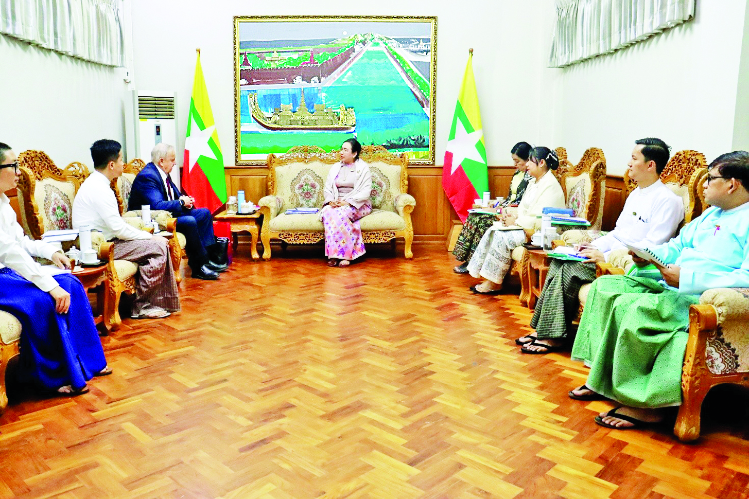 ရင်းနှီးမြှုပ်နှံမှုနှင့် နိုင်ငံခြားစီးပွားဆက်သွယ်ရေးဝန်ကြီးဌာန ပြည်ထောင်စုဝန်ကြီး ဒေါက်တာ ဝါဝါမောင်သည် ဘယ်လာရုစ်သမ္မတနိုင်ငံ အမျိုးသားသိပ္ပံအကယ်ဒမီပညာရှင်နှင့် သိပ္ပံနှင့် နည်းပညာဗဟိုဌာန ညွှန်ကြားရေးမှူး မစ္စတာ အလက်ဆီရှကာဒါရီဗစ်ချ် ဦးဆောင်သည့် ကိုယ်စားလှယ်အဖွဲ့အား ယနေ့ နံနက်ပိုင်းတွင် နေပြည်တော်ရှိ ရုံးအမှတ် (၁) ၌ လက်ခံတွေ့ဆုံသည်။