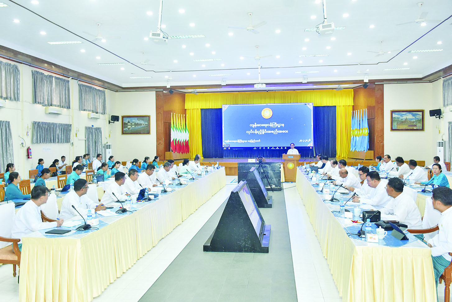 ကျန်းမာရေးဝန်ကြီးဌာန ၂၀၃၀ ပြည့်နှစ်တွင် ရည်မှန်းချက်ပြည့်မီရမည့် ကျန်းမာရေးအညွှန်းကိန်းများနှင့် စပ်လျဉ်း၍ လုပ်ငန်းညှိနှိုင်းအစည်းအဝေးကို ယနေ့နံနက်ပိုင်းတွင် နေပြည်တော်ရှိ ကျန်းမာရေးဝန်ကြီးဌာန အစည်းအဝေးခန်းမ၌ ကျင်းပသည်။