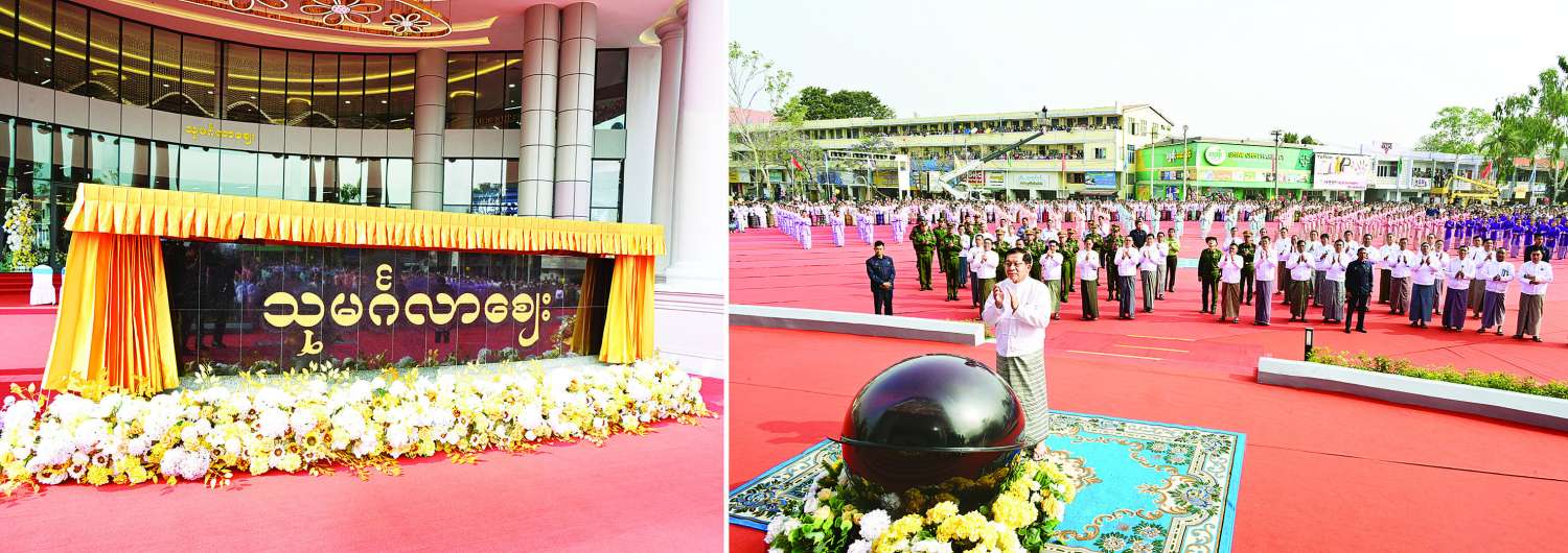 ပြင်ဦးလွင်မြို့၊ သုမင်္ဂလာအဆင့်မြင့်ဈေး ဖွင့်ပွဲအခမ်းအနားကျင်းပ ပြည်ထောင်စုသမ္မတမြန်မာနိုင်ငံတော် ယာယီသမ္မတ နိုင်ငံတော်လုံခြုံရေးနှင့်အေးချမ်းသာယာရေးကော်မရှင်ဥက္ကဋ္ဌ ဗိုလ်ချုပ်မှူးကြီး မင်းအောင်လှိုင် တက်ရောက်ဖွင့်လှစ်ပေး
