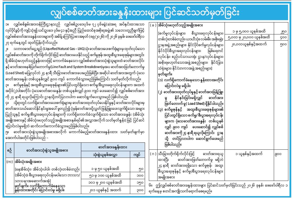 လျှပ်စစ်ဓာတ်အားခနှုန်းထားများ ပြင်ဆင်သတ်မှတ်ခြင်း