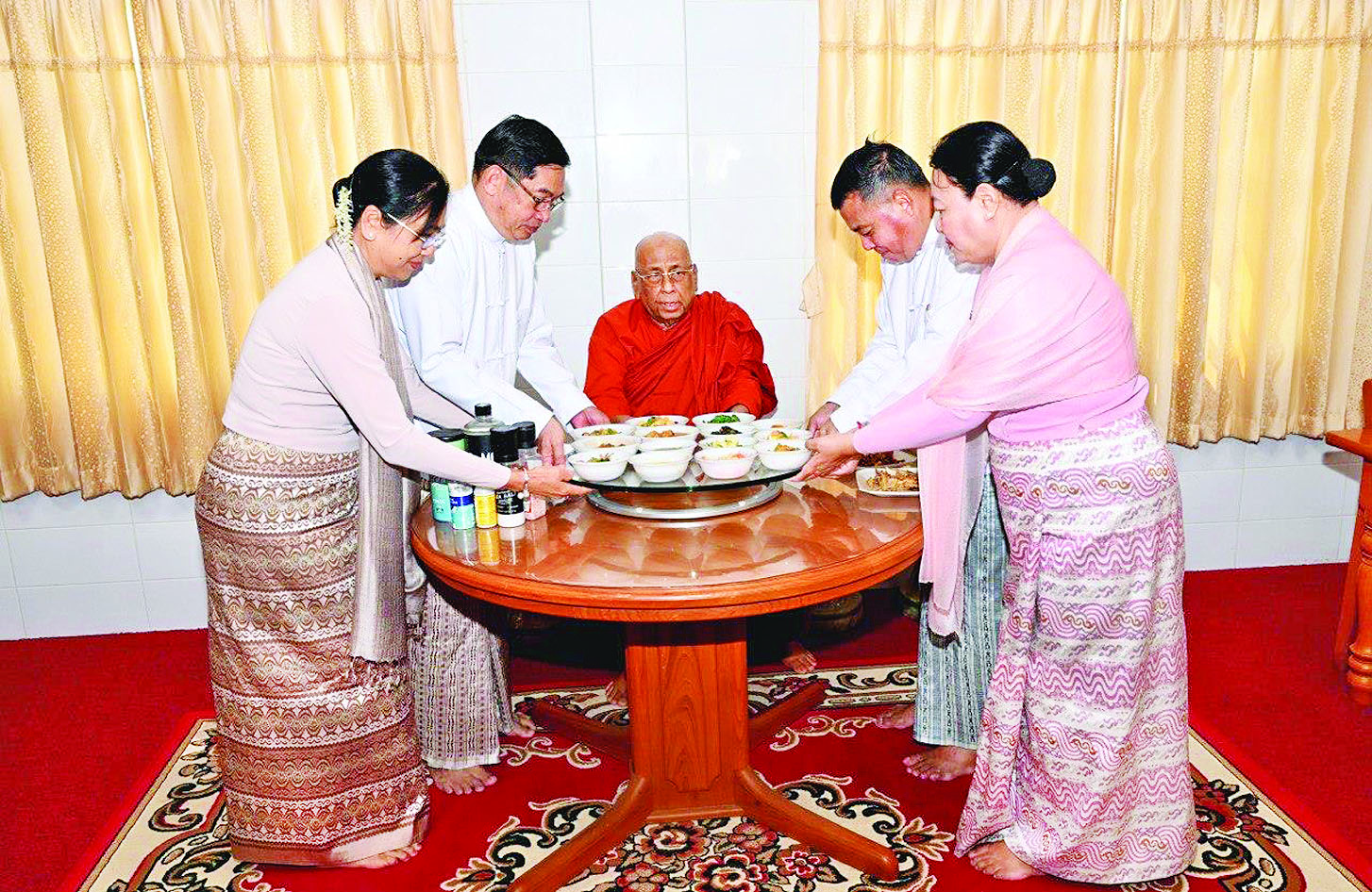 အခမ်းအနားအပြီးတွင် ကော်မရှင်အဖွဲ့ဝင် နိုင်ငံတော်ဝန်ကြီးချုပ်နှင့်ဇနီး၊ အဖွဲ့ဝင်များသည် ကြွရောက်ချီးမြှင့်တော်မူကြသည့် သီတဂူဆရာတော်ကြီး အမှူးပြုသည့် ဆရာတော်အရှင်သူမြတ်များအား နေ့ဆွမ်းဆက်ကပ်လှူဒါန်းခဲ့ကြောင်း သတင်းရရှိသည်။