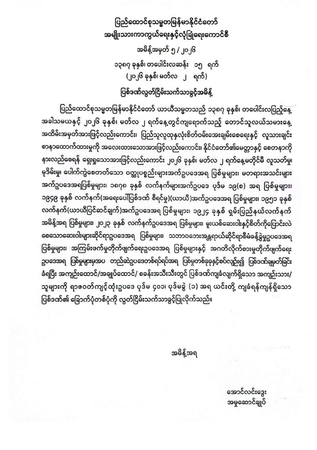ပြဌာန်းပြီးဥပဒေများ