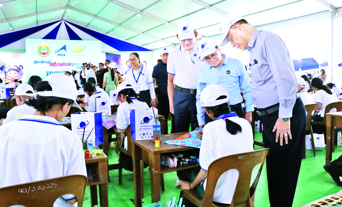 ထိုသို့ သွားရောက်ကြည့်ရှုစဉ် မြန်မာအာကာသအေဂျင်စီနှင့် အာကာသပြတိုက်(ရန်ကုန်)တို့မှ တာဝန်ရှိသူများက လက်ရှိ အခြေခံပညာအလယ်တန်းအဆင့် ပန်းချီ၊ ကာတွန်း၊ ပိုစတာပြိုင်ပွဲ ယှဉ်ပြိုင်နေမှုကို လိုက်လံရှင်းလင်းပြသကြပြီး ပြည်ထောင်စုဝန်ကြီးက ပြိုင်ပွဲဝင် ကျောင်းသား ကျောင်းသူများအား နှုတ်ဆက်အားပေးကာ အဆာပြေအဖြစ် အအေးနှင့်မုန့်များ၊ ချီးမြှင့်ငွေများကို တစ်ဦးချင်းလိုက်လံပေးအပ်၍ ပြိုင်ပွဲအတွက် ဂုဏ်ပြုချီးမြှင့်ငွေများကိုပေးအပ်ရာ တိုင်းဒေသကြီးပညာရေးမှူး ဒေါက်တာချိုချိုမြတ်အောင်က လက်ခံရယူသည်။