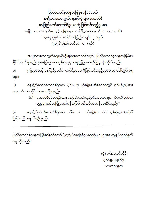 နေပြည်တော်ကောင်စီဥပဒေကို ပြင်ဆင်သည့်ဥပဒေ