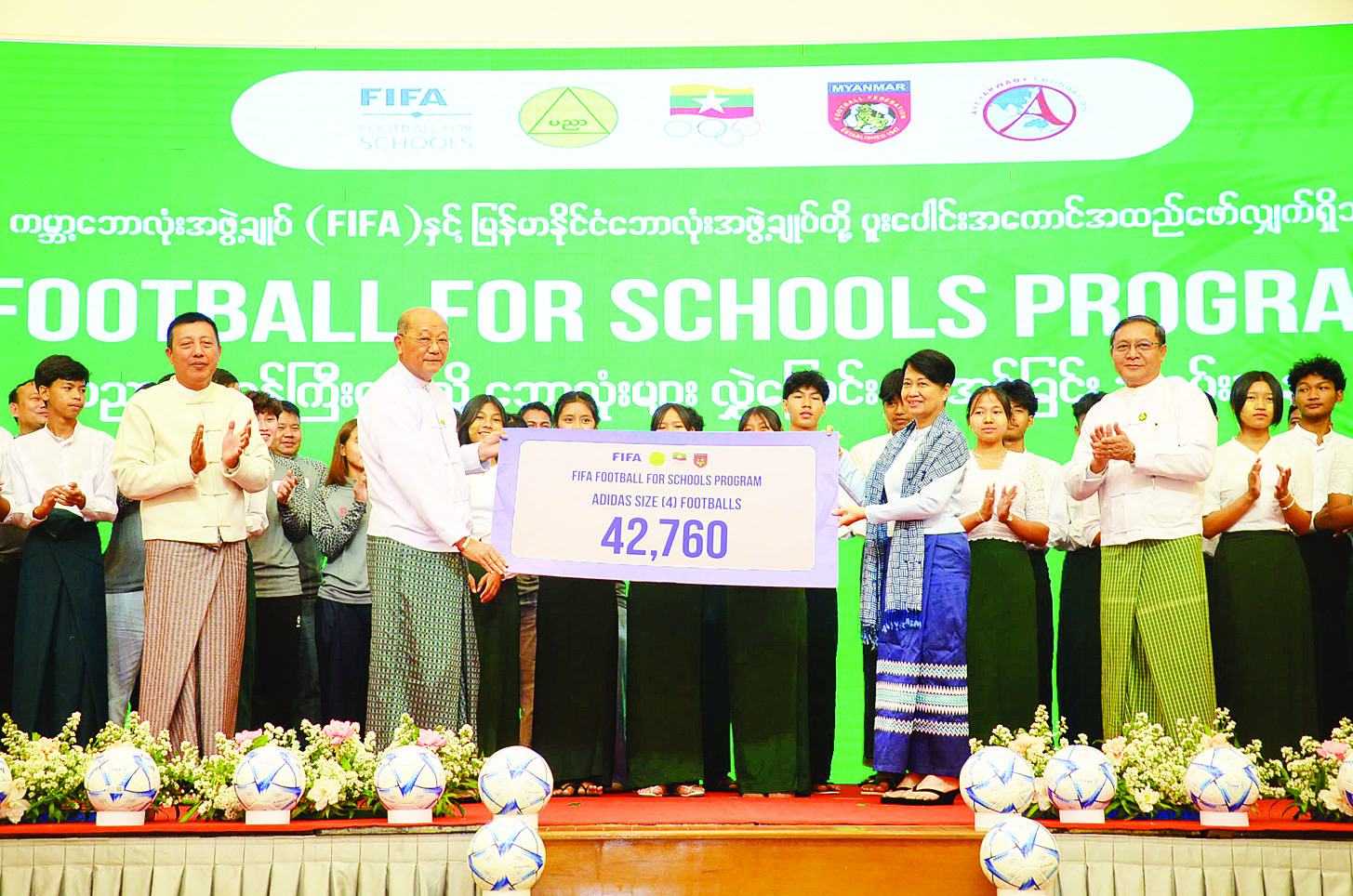 ကမ္ဘာ့ဘောလုံးအဖွဲ့ချုပ်နှင့် မြန်မာနိုင်ငံဘောလုံးအဖွဲ့ချုပ်တို့ ပူးပေါင်းအကောင်အထည်ဖော်လျက်ရှိသည့် Football For Schools Program ဖြင့် ပညာရေးဝန်ကြီးဌာနသို့ ဘောလုံးများ လွှဲပြောင်းပေး