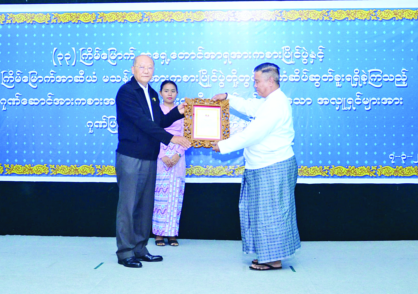ဆုတံဆိပ်များ ဆွတ်ခူးရရှိခဲ့ကြသည့် နိုင်ငံ့ဂုဏ်ဆောင် မြန်မာအားကစားအဖွဲ့များကို ပံ့ပိုးကူညီဆောင်ရွက်ပေးခဲ့သည့် စေတနာရှင်အလှူရှင်များအား ဂုဏ်ပြုမှတ်တမ်းလွှာ ပေးအပ်