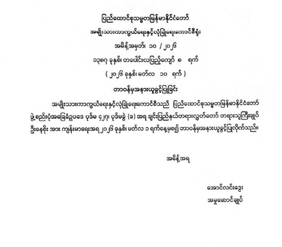 ဝန်ကြီးဌာန ကြေညာချက်များ