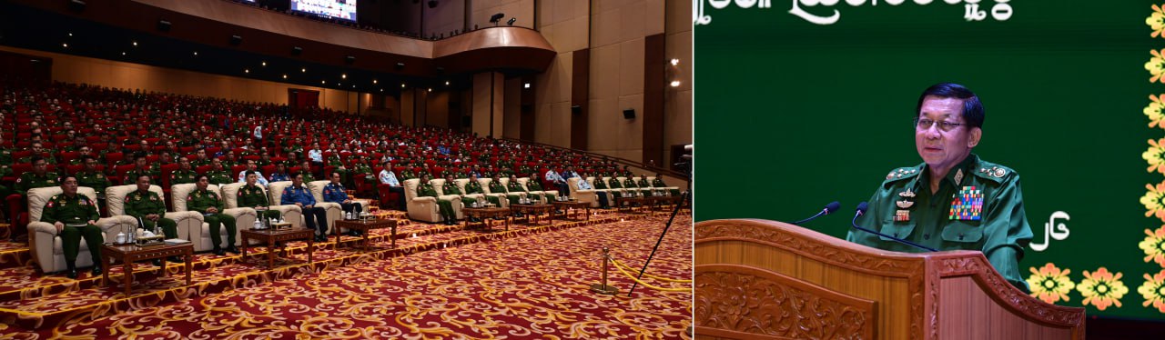 နိုင်ငံတော်လုံခြုံရေးနှင့်အေးချမ်းသာယာရေးကော်မရှင်ဥက္ကဋ္ဌ တပ်မတော်ကာကွယ်ရေးဦးစီးချုပ် ဗိုလ်ချုပ်မှူးကြီး မင်းအောင်လှိုင်က ၂၀၁၁ ခုနှစ်မှ ၂၀၂၅ ခုနှစ်အတွင်း ခေတ်မီတပ်မတော်ဖြစ်စေရေး ဆောင်ရွက်ခဲ့မှုနှင့်ပတ်သက်၍ ပြန်လည်သုံးသပ်ဆွေးနွေးမှာကြားခြင်းအား ယနေ့မွန်းလွဲပိုင်းတွင် နေပြည်တော်၊ ဇေယျာသီရိဗိမာန်၊ သဘင်ဆောင်ခန်းမ၌ ကျင်းပပြုလုပ်သည်။