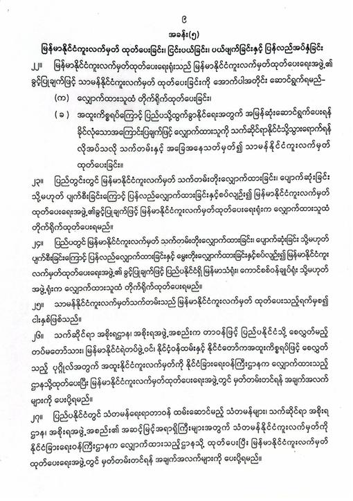 မြန်မာနိုင်ငံကူးလက်မှတ်ဆိုင်ရာဥပဒေ ပြဋ္ဌာန်း