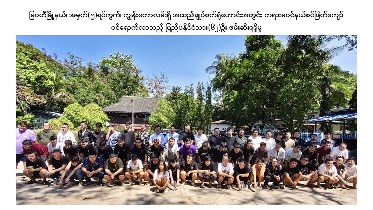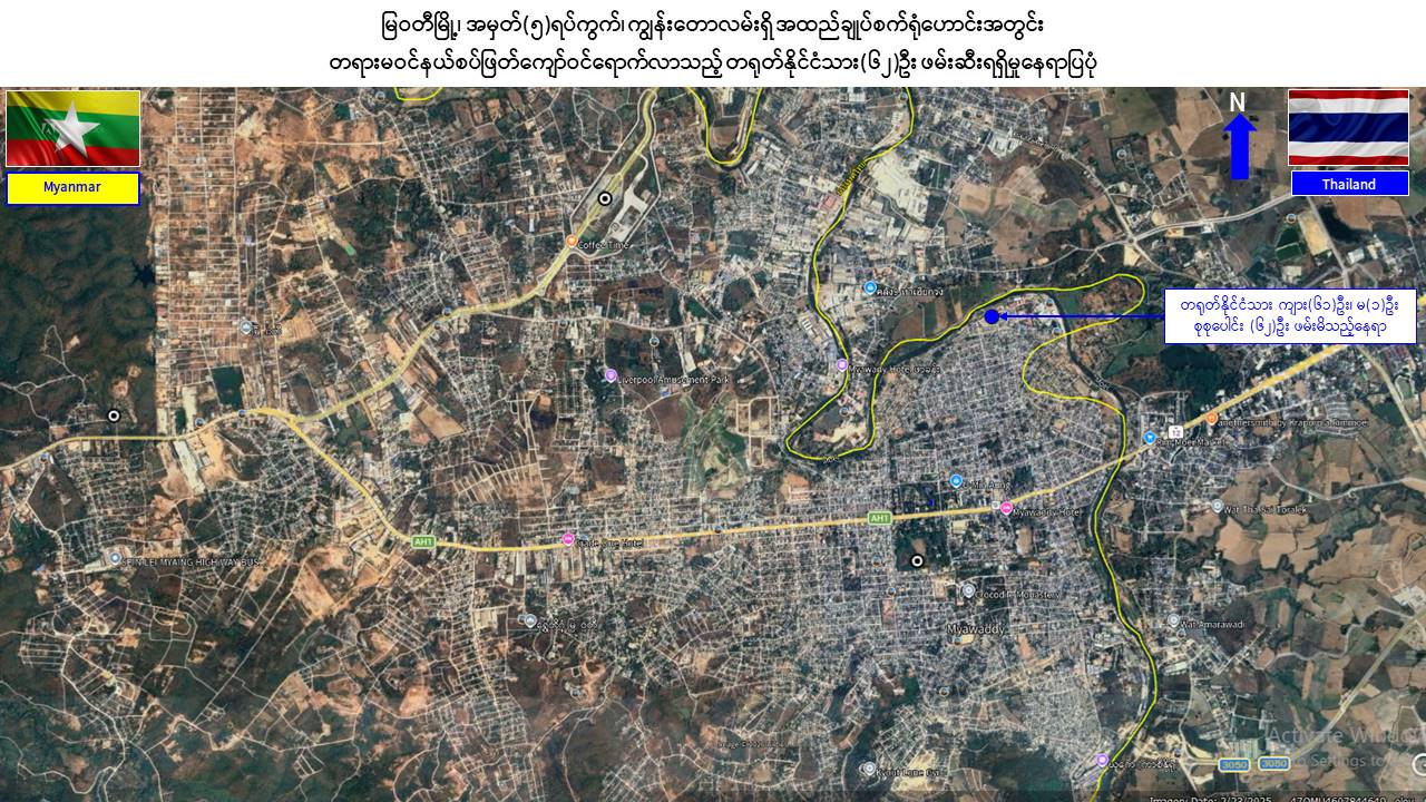 ထိုသို့ ဆောင်ရွက်လျက်ရှိစဉ် ကရင်ပြည်နယ်၊ မြဝတီမြို့ အမှတ်(၅)ရပ်ကွက်၊ ကျွန်းတောလမ်း အနီးတစ်ဝိုက်တွင် မြန်မာနိုင်ငံအတွင်း တရားမဝင်နယ်စပ်ဖြတ်ကျော်ဝင်ရောက်နေသည့် ပြည်ပနိုင်ငံသားများ ဝင်ရောက်ပုန်းအောင်းနေထိုင်လျက်ရှိကြောင်း သတင်းများအရ လုံခြုံရေးတပ်ဖွဲ့ဝင်များ၊ အုပ်ချုပ်ရေးအဖွဲ့အစည်းများနှင့် ဌာနဆိုင်ရာတာဝန်ရှိသူများ ပါဝင်သော ပူးပေါင်းအဖွဲ့များက သွားရောက်စစ်ဆေးရာ မတ် ၂၀ ရက် ယနေ့မွန်းလွဲ ၁ နာရီခွဲခန့်တွင် အဆိုပါလမ်းရှိ အထည်ချုပ်စက်ရုံဟောင်းအတွင်း ပုန်းအောင်းနေသည့် တရုတ်နိုင်ငံသား အမျိုးသား ၆၁ ဦး၊ အမျိုးသမီး ၁ဦး စုစုပေါင်း ၆၂ ဦးကို ဖမ်းဆီးထိန်းသိမ်းခဲ့သည်။