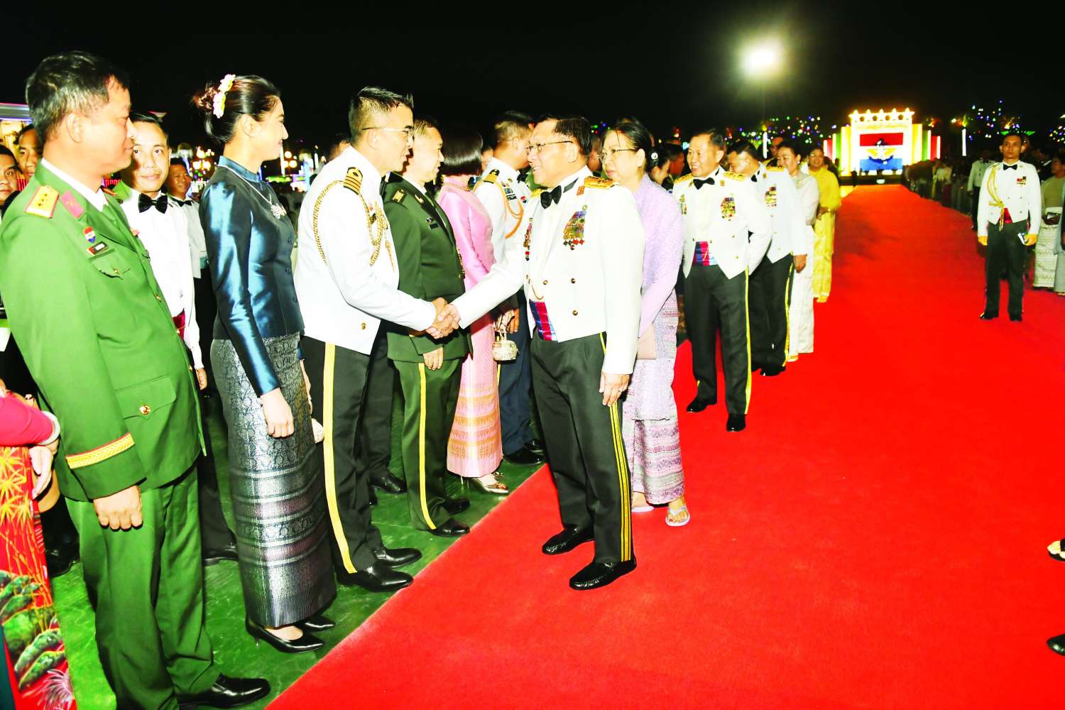 ယင်းနောက် နိုင်ငံတော်လုံခြုံရေးနှင့်အေးချမ်းသာယာရေးကော်မရှင်ဥက္ကဋ္ဌ တပ်မတော်ကာကွယ်ရေးဦးစီးချုပ်နှင့်ဇနီးတို့သည် အခမ်းအနားတက်ရောက်လာကြသူများနှင့်အတူ ဂုဏ်ပြုညစာကို အတူတကွသုံးဆောင်ကြသည်။